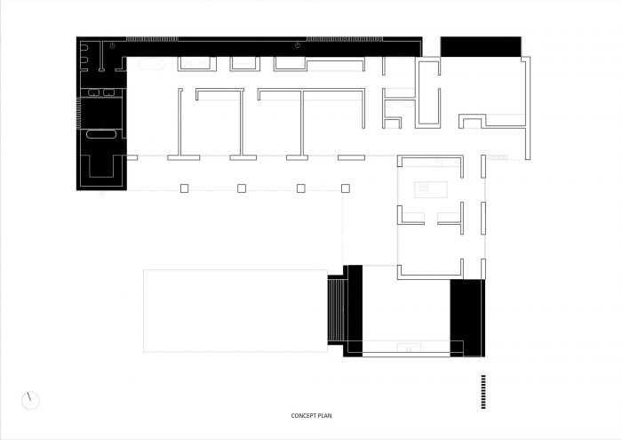 利用现有建筑的 "L "型结构,对私人和社会区域的明确区分进行投资。