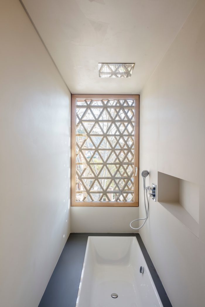 The facade is defined by lattices that provide shade from the sun and which are a modern-day nod to the lattices found in the drying areas of old tanneries.