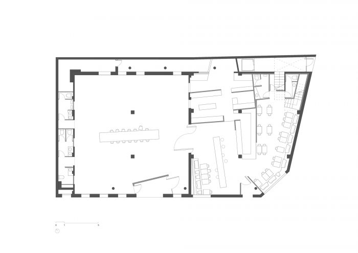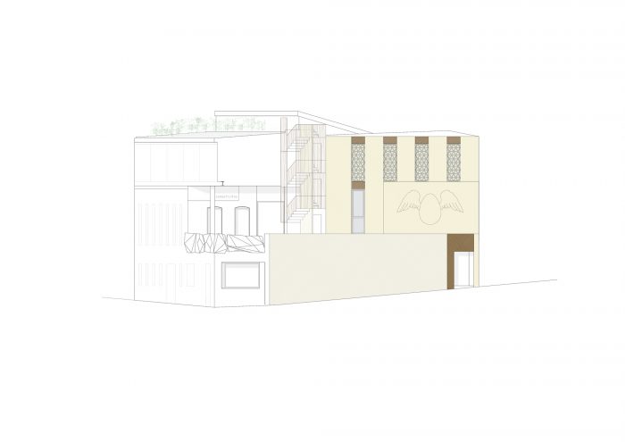 在保持历史联系的同时,贡献一个有能力促进街区复兴的项目是前提之一。酒店是进化的餐厅项目,为制革公司提供了可以接待客户的空间。