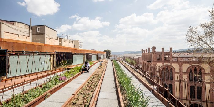 Covering the whole of the roof is a garden where the origins of the Rec neighbourhood - gardens among tanneries - converge, and is a commitment to a future transformation of a sustainable neighbourhood and the main tool for designing and explaining the Somiatruites cuisine. The garden is fertilised by the chickens living there and irrigated by the well water from beneath the factory.