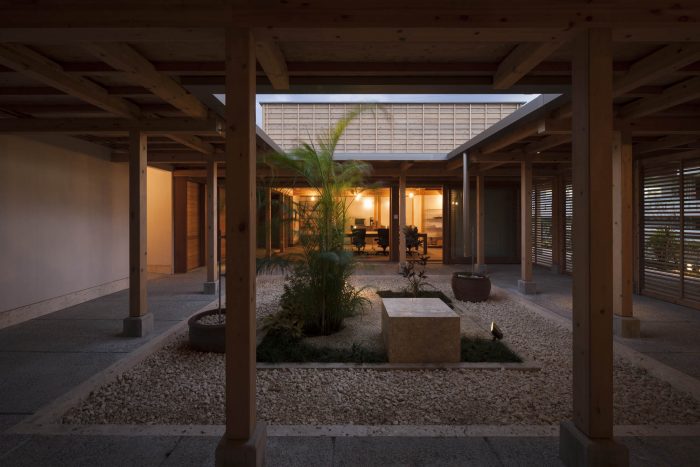 Pavilion is lined up at the end of the road, which is all led to the rich Ryukyu limestone floor of Okinawa. It is a relaxing place to rest and stay after the procedure. The examination room is designed as a large living space for patients to receive consultations. Most of the plants that grown in the garden originates from the Ryukyu islands. The plant types are carefully chosen so that they complement with each other, and that the vegetation exist as a way to deliver a calming scent. ‘’Sora no Mori’’ is an architecture that is fully constructed with timber. Different types of wood are carefully selected for the structure as well as the interior finishes in order to achieve a natural textile quality.