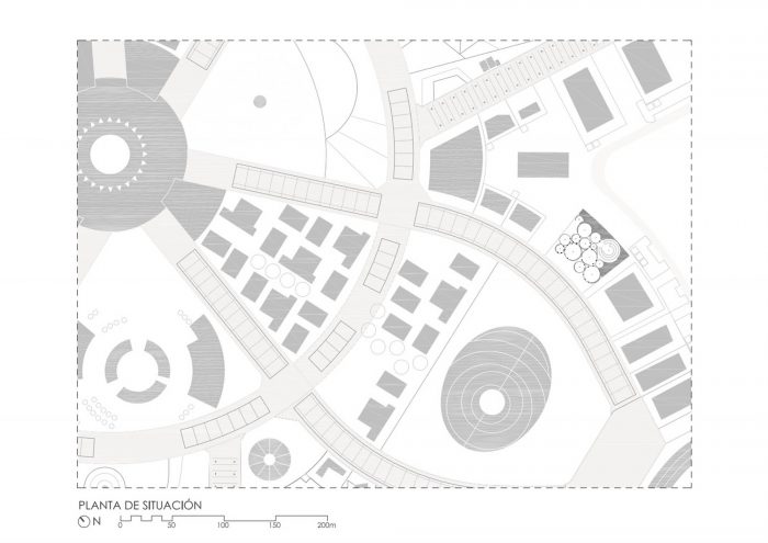 The proposed Pavilion is a sequence of intertwined squares, a concatenation of intermediate spaces, of places that produce diverse experiences in which time seems to recover. After so much walking, it is beautiful to think that the Spanish Pavilion provides seating and shadow. This offer is an act of welcome and friendship. The building, therefore, is a space that wants to be tangible and friendly, built with evocative materials providing domesticity and not wanting to be a mall or a business center.