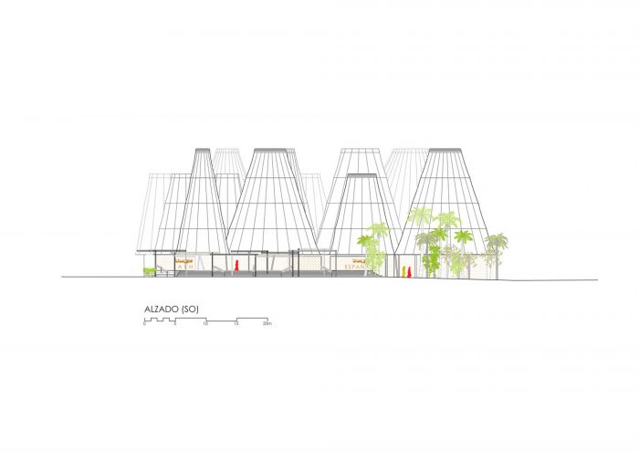 我们把展馆建成一个开放的空间,通过被动式系统进行冷却;一个在世博会消失后可以在其他地方重新使用的场所,其材料可以很容易地被重新使用或回收。