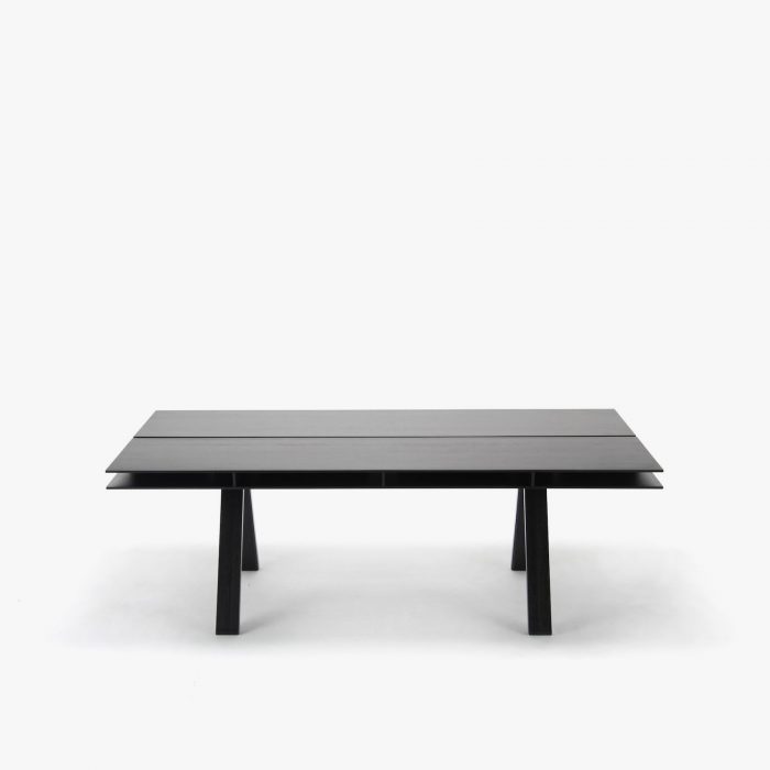 Spectrum is a minimalist table created by Berlin-based designer Geckeler Michels for Karimoku New Standard. Spectrum is a versatile table system for creative work environments, designed to accommodate casual meetings and flexible co-working arrangements. Spectrumʼs distinctive feature is a double tabletop with storage compartments around the perimeter that keep clutter to a minimum. In addition to the displayed meeting table, the system is designed to include a single work desk, a basic table for domestic use and single tabletop and high-table versions.