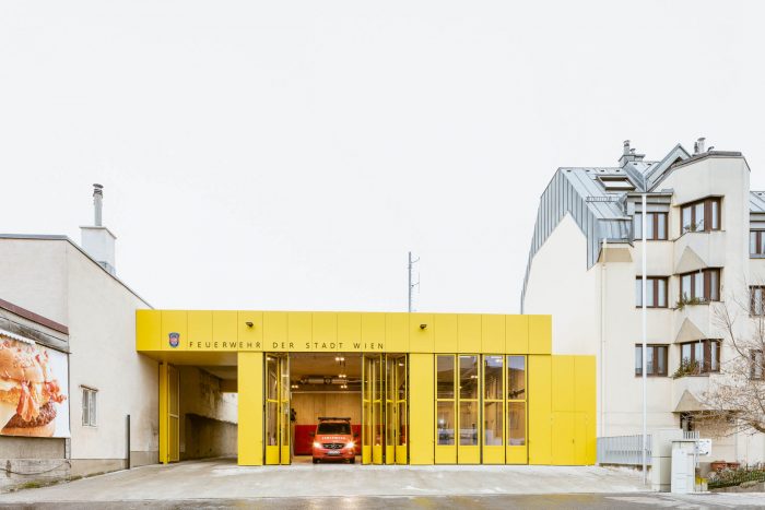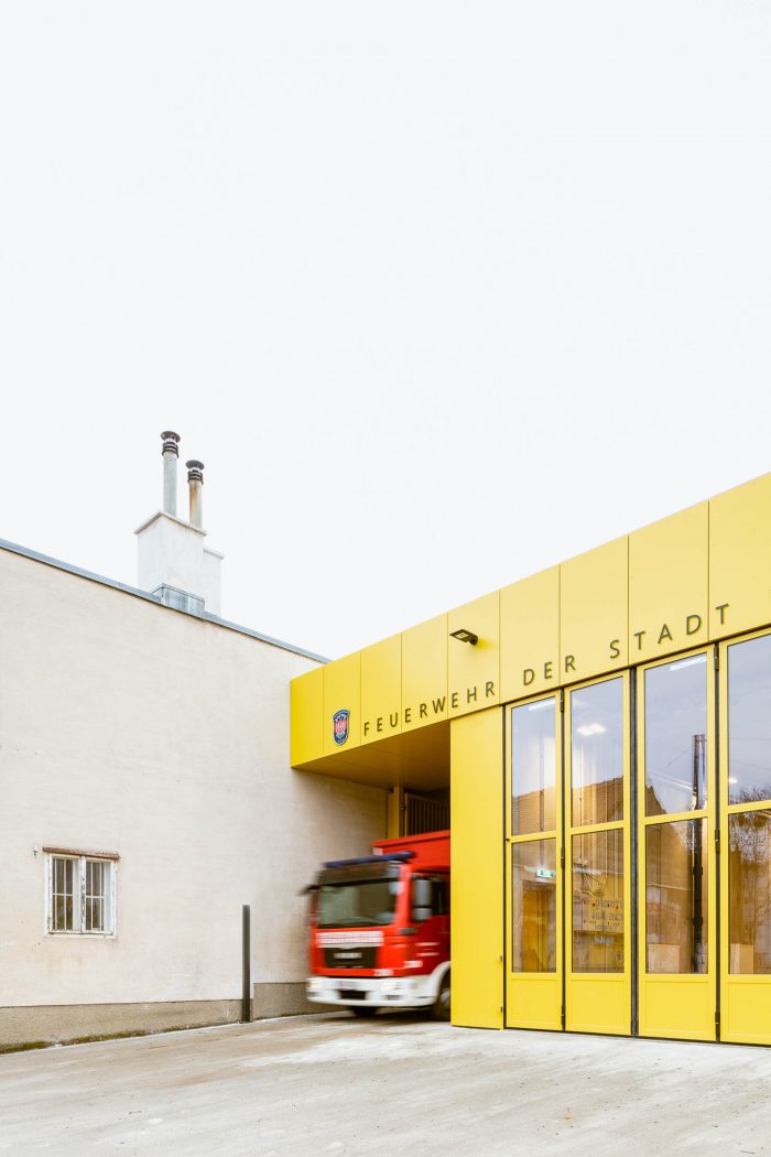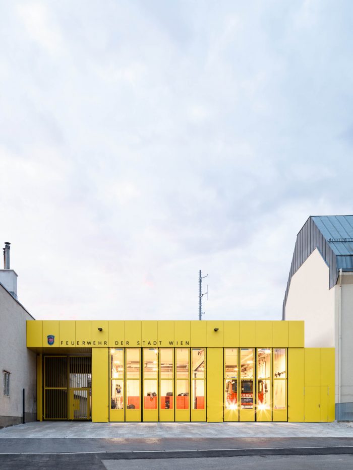 The choice of the classic yellow so often found on Viennese facades – and which dominates in Speising – helps tie the new building into its surroundings. This strong primary colour brings together the various metal elements of the facade and gives Speising Fire Station its own distinctive character. Taken as a whole, the project offers a protective, public-service space for the firefighters who regularly risk their own lives to save those of others.