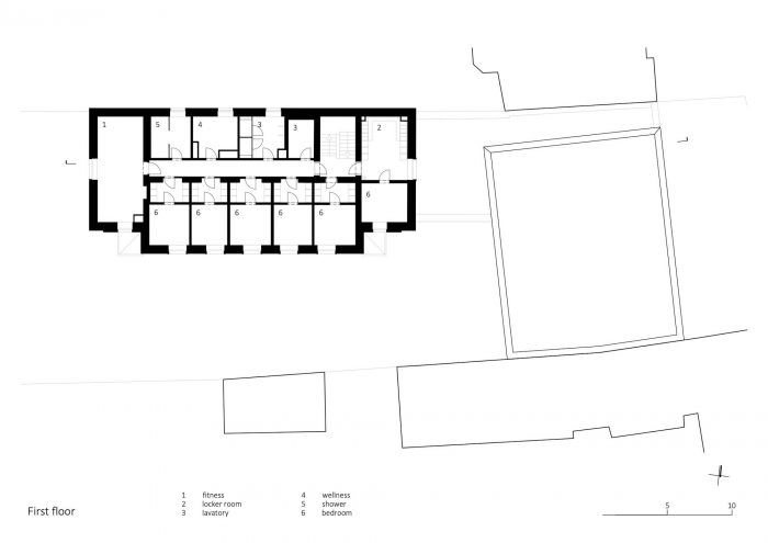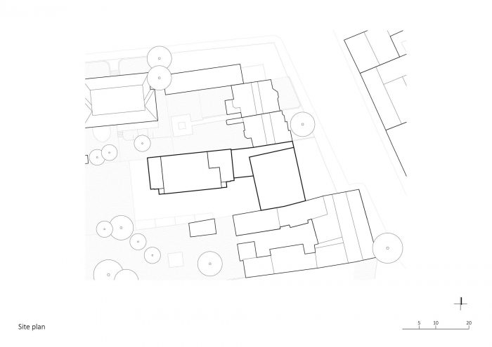 改造后的车站包括三个空间/功能单元:车辆大厅、高活动区和安静的房间。位于场地后部的19C后期建筑的空间,从街道向后延伸了一段距离,已经被重新组织,现在可以完全使用了。公共区域和厨房与相邻的餐厅和室外露台位于一楼;12名消防员的六个安静的 "准备室 "被安置在楼上。新的单层车辆大厅面向街道。现在由一个低层的 "连接结构 "连接,它也是消防站的主要入口,大厅和原来的建筑仍然是可识别的独立结构。值班长的办公室被战略性地安置在靠近这个主入口的地方,位于车辆大厅和公共区域之间。