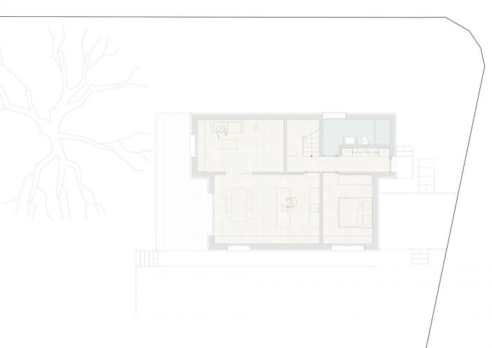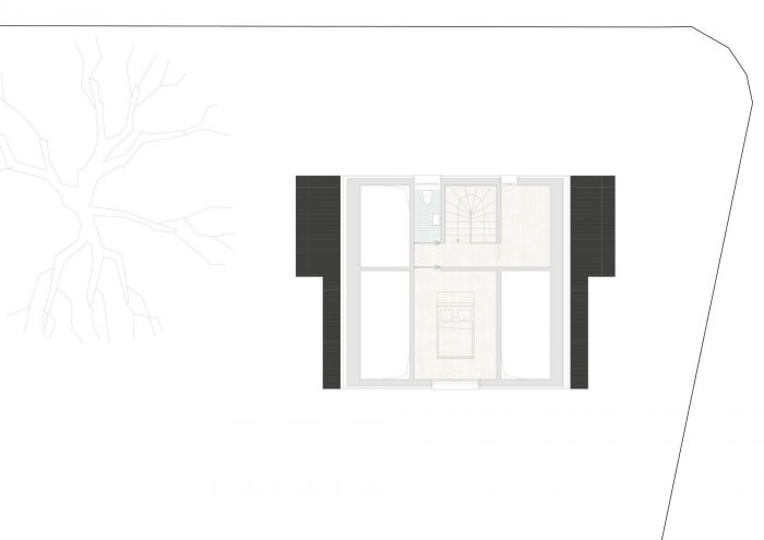 The House Made of Spruce is a renovation with a partial replacement building. The original house was built in two stages. The basement was built before the Second World War. It was, in corresponding prosperity, designed for a large house and solidly built. The upper floors, the wooden structure, had to be built after the end of the war, much smaller and simpler than intended. Due to the poor structure of the wooden building, the decision was made to build a replacement building on the upper floors and to renovate the basement. The new building takes over the internal structure and load transfer of the original building and, due to urban planning requirements, also the external volume.
