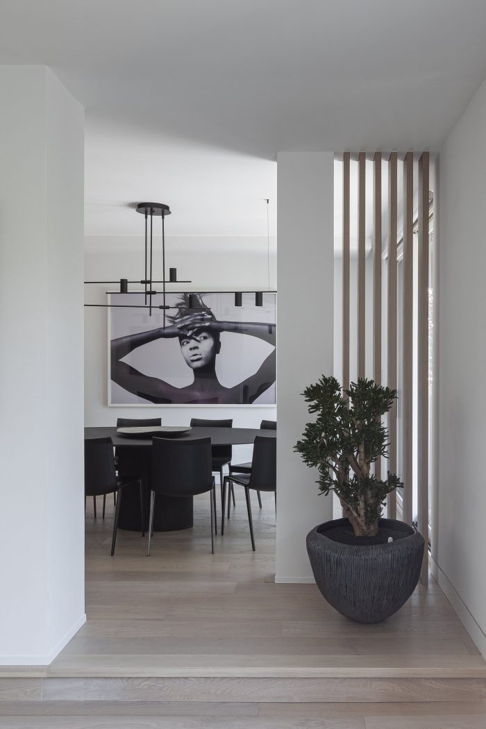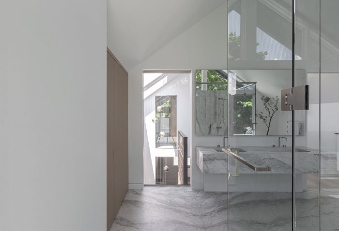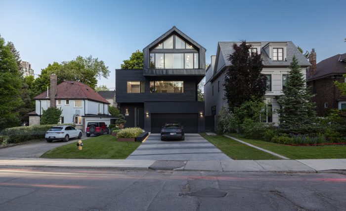 Located in the Forest Hill neighborhood in Toronto, the stacked profile of the house is well scaled to the surrounding, its face with a pitched roof blending and provoking at the same time. Simultaneously, the monotonous, dark presence evokes a sense of monumentality, hinting at more fluid and undefined spatial boundaries inside.