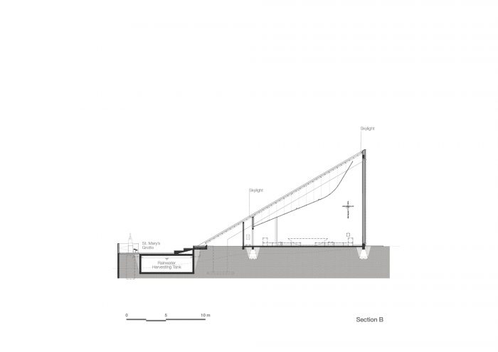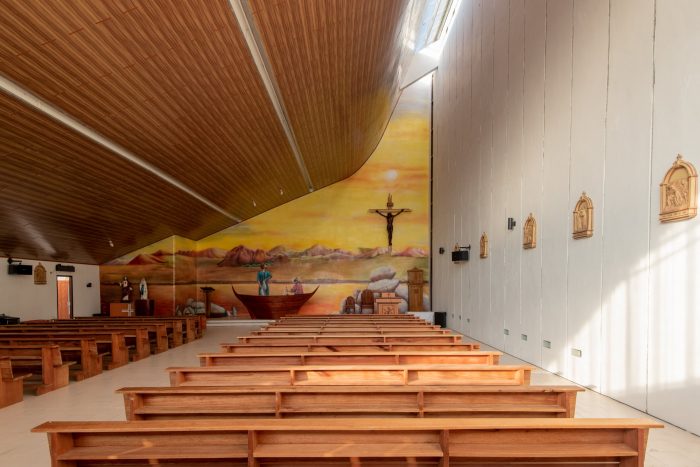 Another major challenge is the scarcity of freshwater. When the Mengkait people need fresh water, they would have to travel to a neighboring island by boat and get the water from a natural freshwater well there. This has made us design, a rainwater harvesting system with an open platform and Mother Mary Grotto facing the ocean on top of it as a place of reflection. The idea is to store every drop of water that falls from the roof of the church for the everyday use of the people of Mengkait. The building was completed although the rainwater harvesting system has not yet been built.