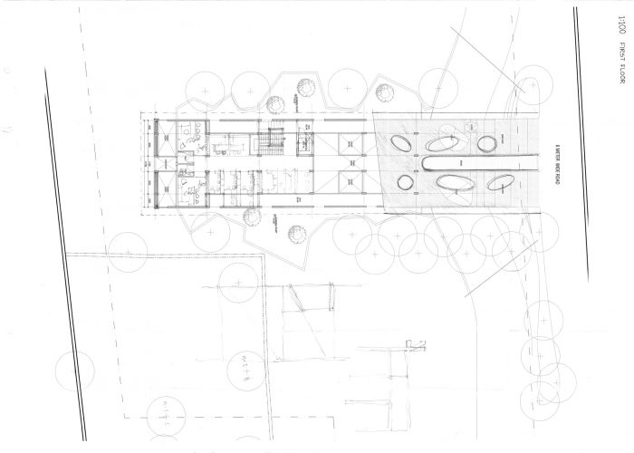 朝向东边和西边的一面大部分是空白的,除了连接住户和周围环境的小窗户。窗户也创造了一种风,穿过棚子的高度,通过通风器沿着北面的轻质桁架排出,因此避免了顶部的热袋,并有效地将建筑冷却了大约10-12度。该建筑的设计使空间得到了合理的利用,允许最大可能的绿色覆盖和软景观。