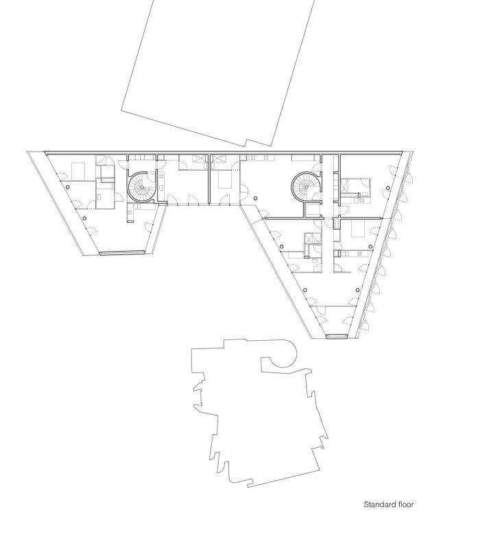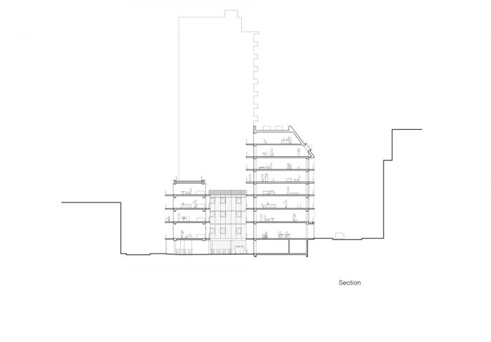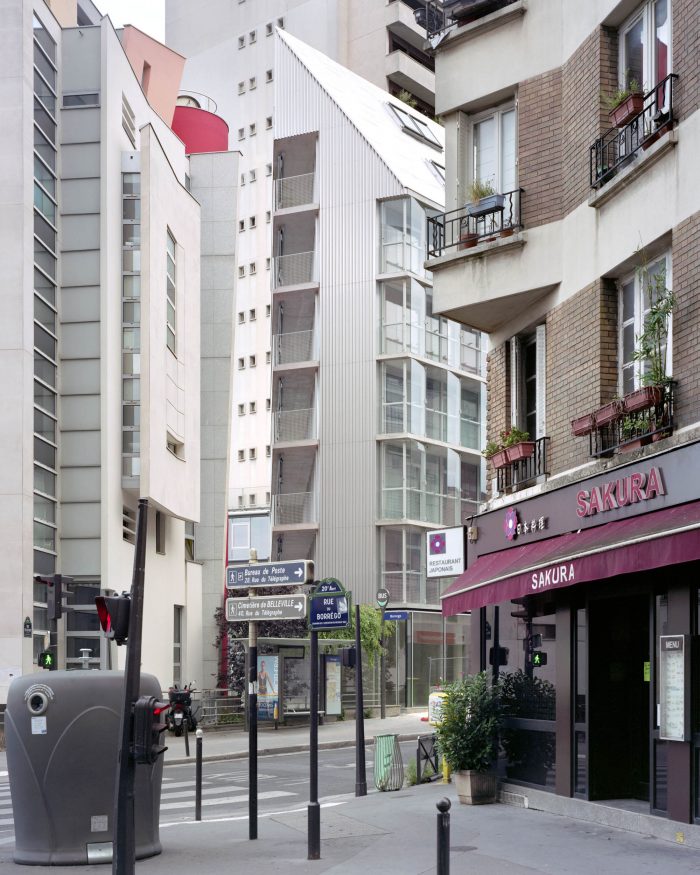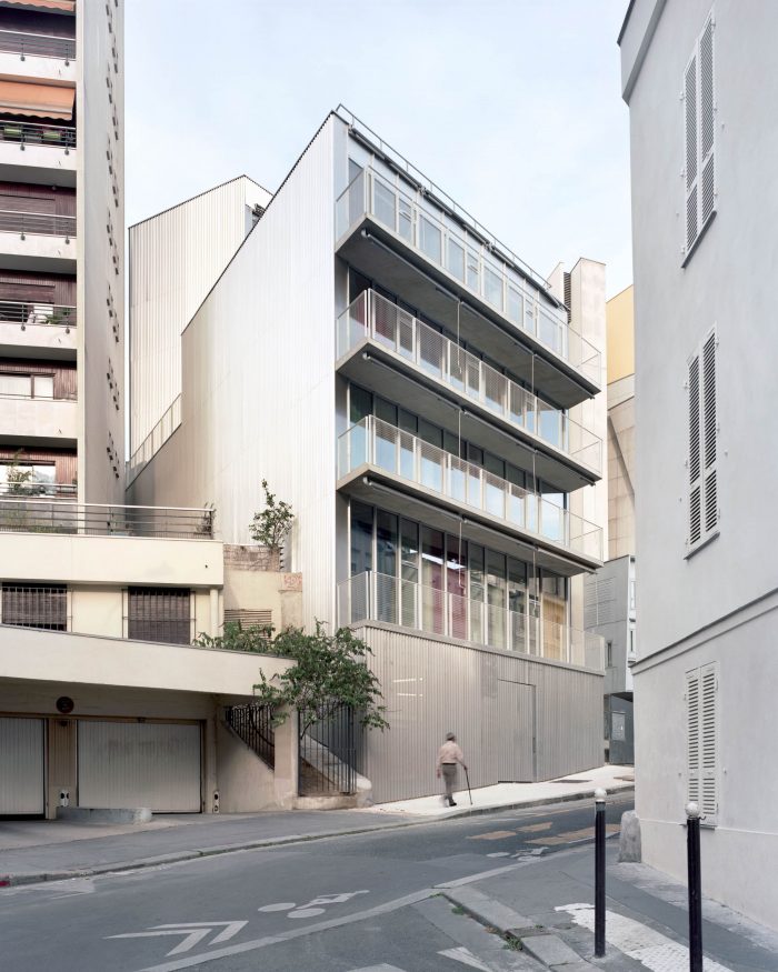 在典型的巴黎(和郊区)环境中开发住宅建筑,意味着要与巴黎的密度相关的特殊限制进行谈判。其目的是利用这些规则,提供一个受欢迎的和创新的国内建筑形象。这是关于处理项目的情况。这意味着有很多优势(两条街道之间的交叉地块,一整层的高度差),而不是不便(地块的狭窄,令人印象深刻的相邻建筑)。