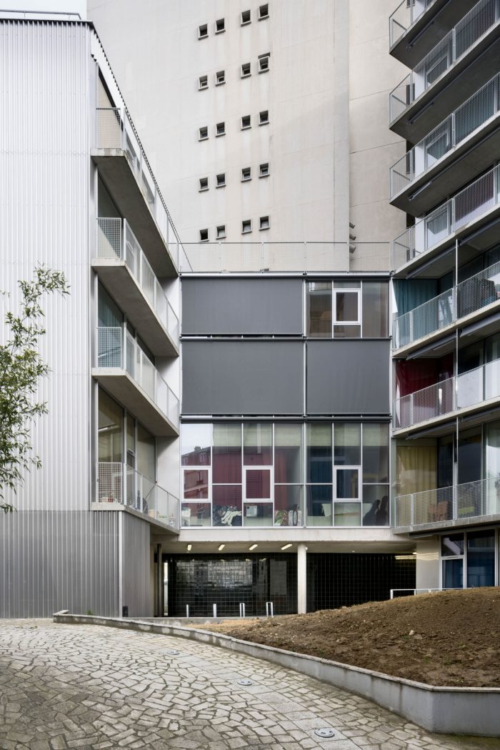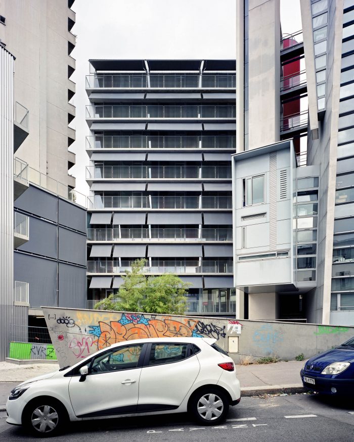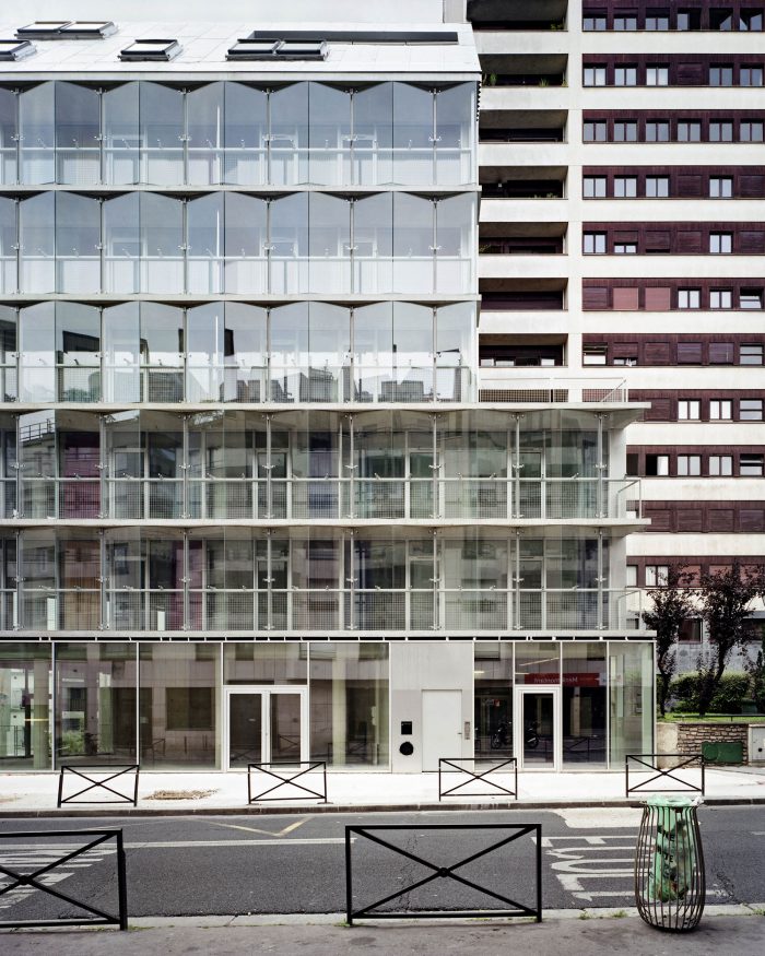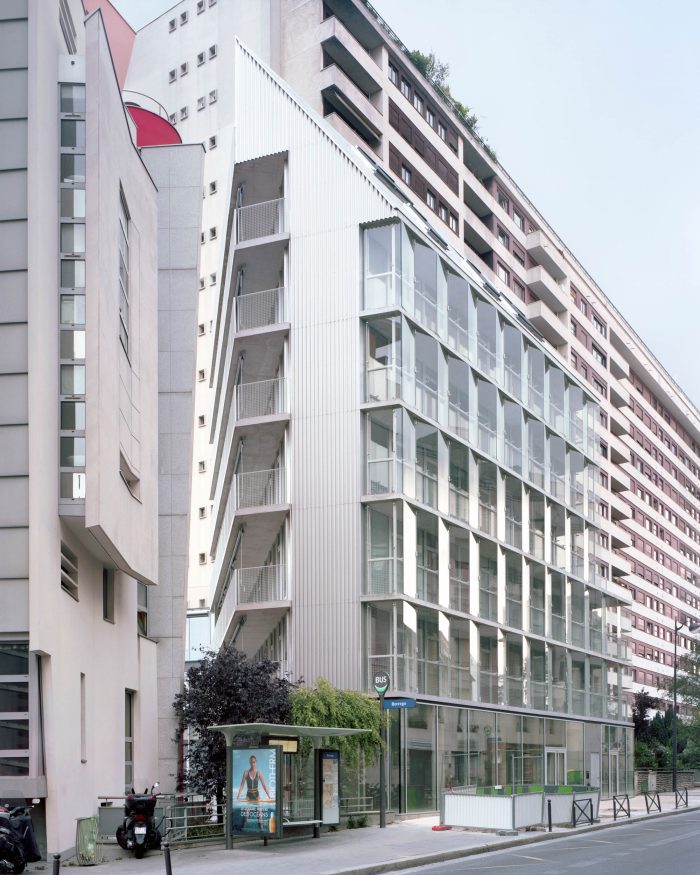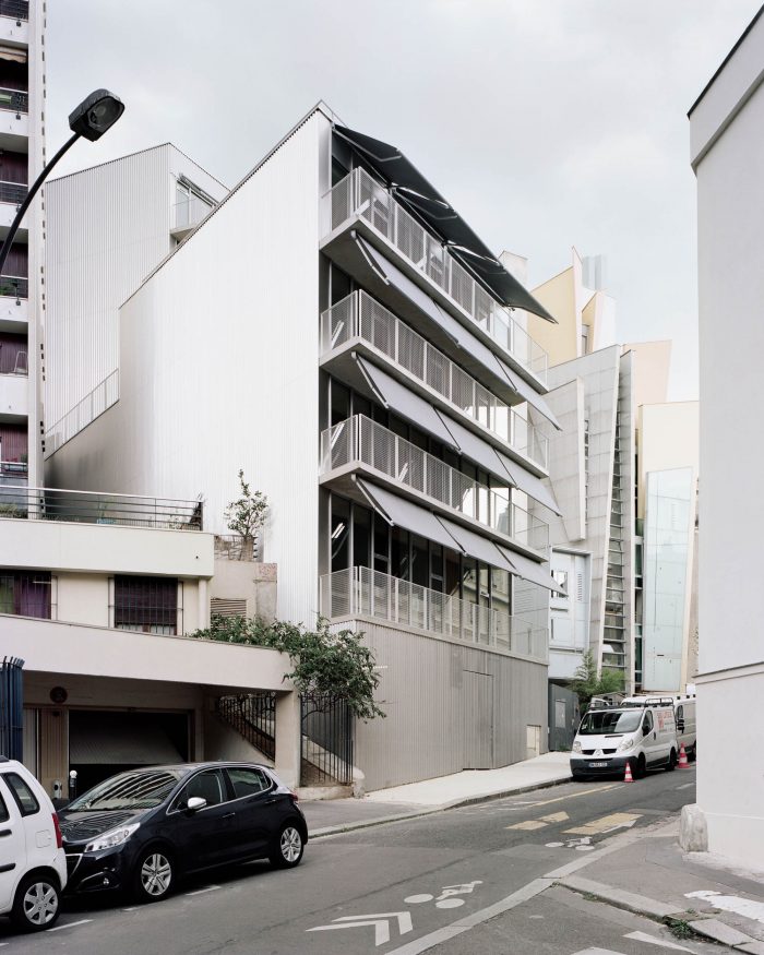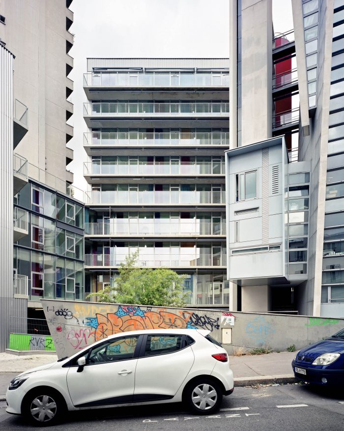 To develop a housing building in a typical Parisian (and suburban) context, means to negotiate with particular constraints, linked with the Parisian density. The aim is to take advantage of those rules to offer a welcoming and innovative image of domestic architecture. It is about dealing with the situation of the project. It means as many advantages (a crossed over plot between two streets, a difference of height of one full level) than inconveniences (narrowness of the plot, impressive adjoining buildings).