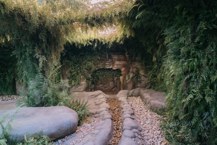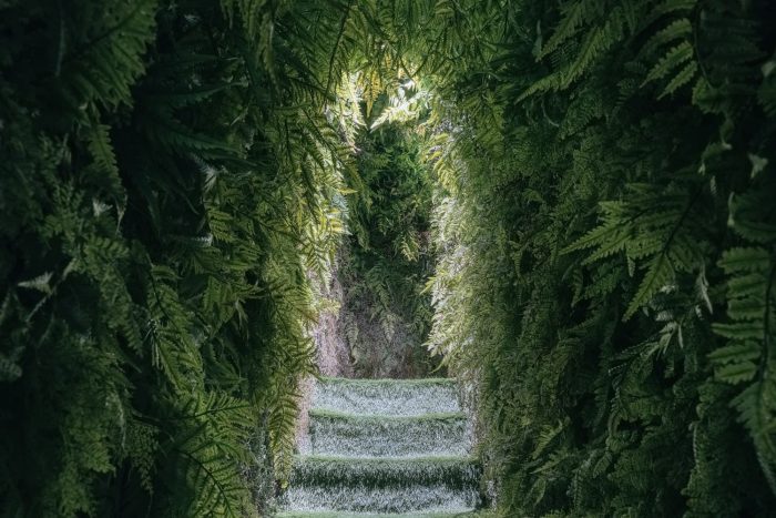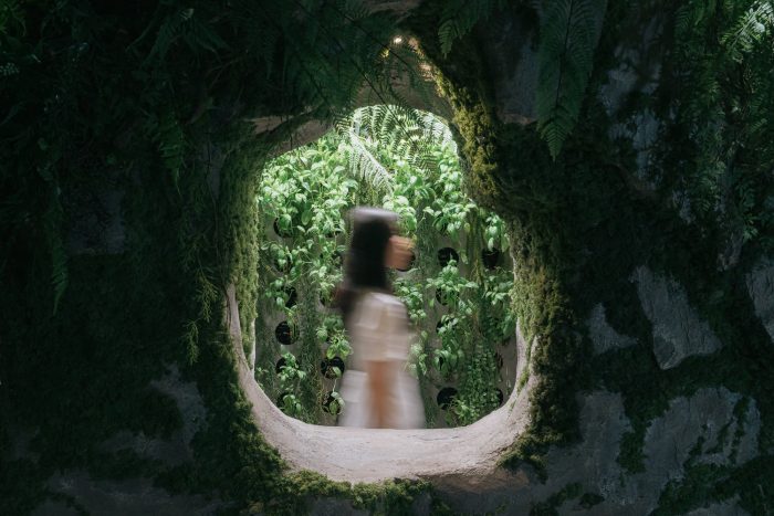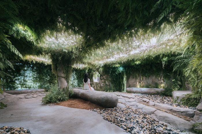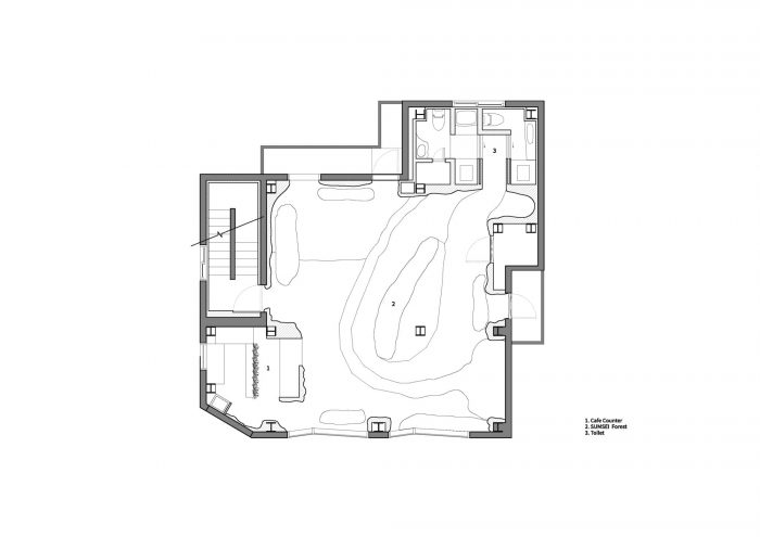 3F Sumsei Forest - After passing through a mysterious green passage where rustling leaves welcome you, you finally reach the forest. Birds are chirping, the water is flowing, and the sky is glimmering. The 3rd floor is the forest of Sumsei, where the five senses are opened. You can also enjoy a drink with the scent of homegrown basil. Spectators will accept this space with their own senses that have been accumulated through the experiences from each floor. You can stay in peace with comfort while savoring the pieces of nature that have passed by.