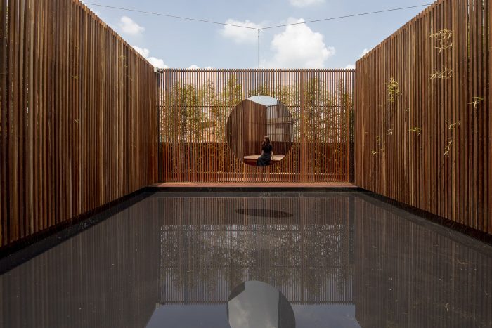 ROOFTOP Refresh five senses - The rooftop is a space to expand the forest of Sumsei and finish the journey. The sky is infinitely high above your head, and in the sky, there is a mirror swaying in the wind. Below, a square, straight head contains the objects of the sky and wind. The mirror is a mirror of the self that is finally faced again, and is the period of a long journey. Our body repeats to go in and out of nature due to the swaying mirror. The length and color of light that changes every moment, the expression of water that captures the sky, and you can even feel the sound of the wind moving through the bamboo and its canes.