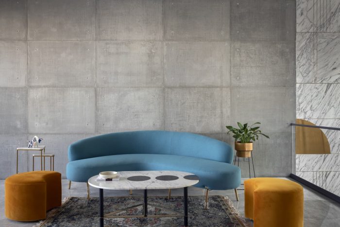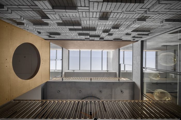 Throughout the house concrete is the main element and material used, serving as both, a canvas and the primary art as well. From adding bold pigments to the material to even textures on the surface, the versatility of concrete is clearly visible with every design choice made. Even the furniture, artwork, and lighting are carefully designed to accentuate the spatial experience.