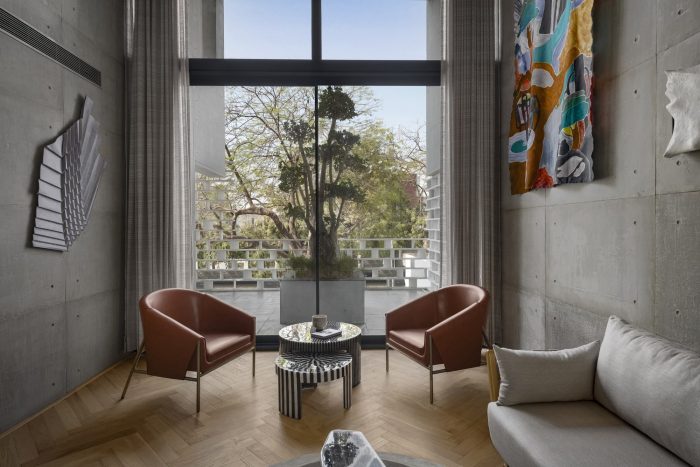 The residence is an intricate play of design and function that found its inception in the client’s passion to create a home for three generations of his family. The client’s mandate was simple and humble; a concrete residence where all spaces remain interconnected like one’s family but also embodies the client’s appreciation of art and design. The project is conceptualized as an inward-looking house where the plan opens at the inner core with a triple-height courtyard and is an extensive exploration of concrete and art.