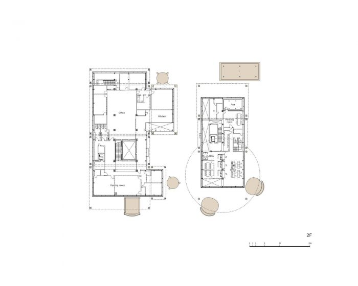 城市中的大客厅--大客厅的概念已经成为家庭聚会的标志性地点,同时也是欢迎客人来此的地方。为了使这个空间易于理解,并让第一次来的人感到熟悉,桌子和椅子被设计成Shunkado的咖啡馆、商品店和当地的滨松岩田信用金库的形象。其目的是通过一个连接人们的社区综合体,在城市中创造活力。