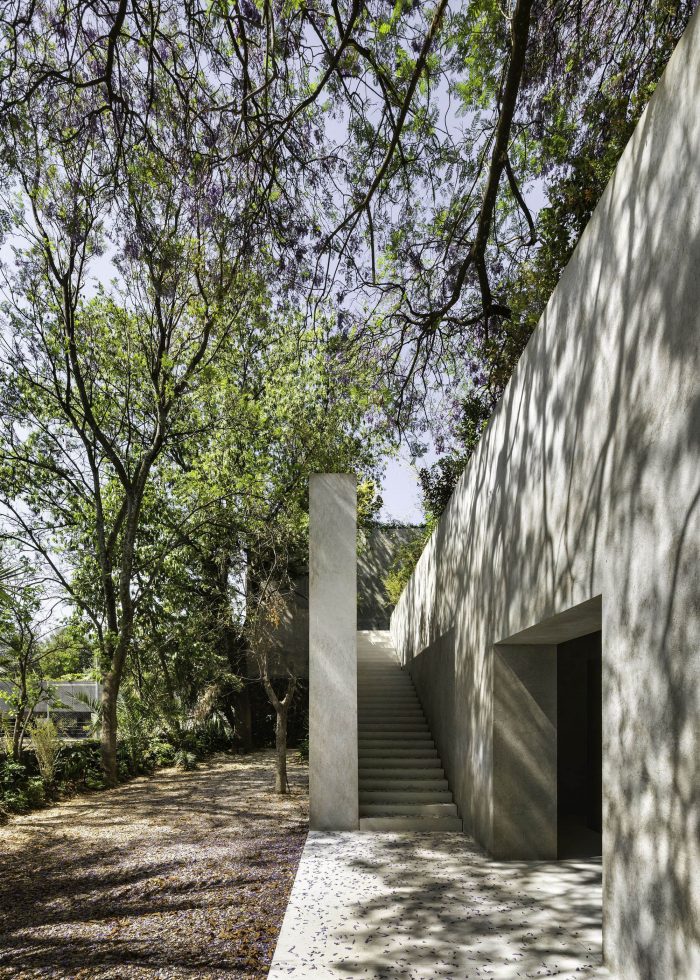 The project sits on an elongated plot with a strong topography. Its upper part is relating to the busy Paseo de la Reforma. At the other end it descends in a succession of terraces to the Dolores stream, 36 meters below.