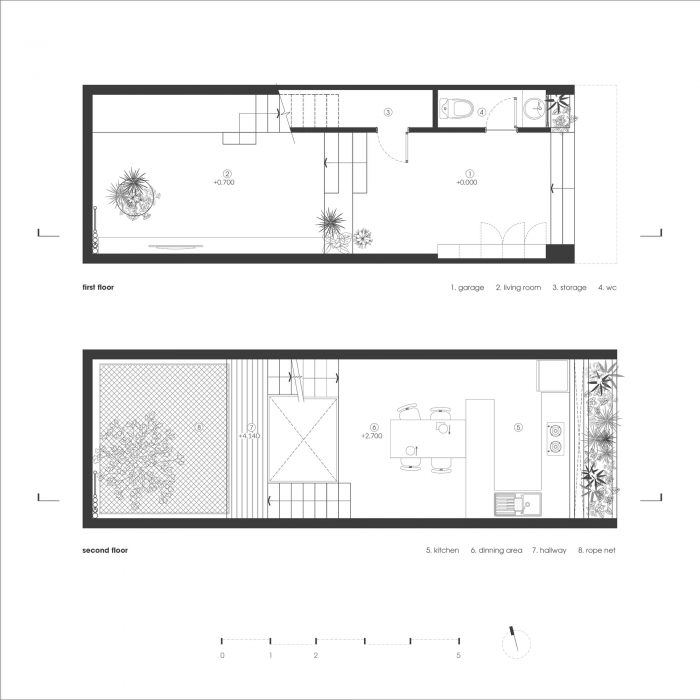 Minimizing the volume of reinforced concrete construction, inside the shell (wall and roof floor) is a pre-assembled steel wooden floor system, in order to create the lightest feeling. The form of sparse wooden floors, staggered layout, and flexible and suspended stairs, allow the "living atmosphere" to creep into every corner of the house.