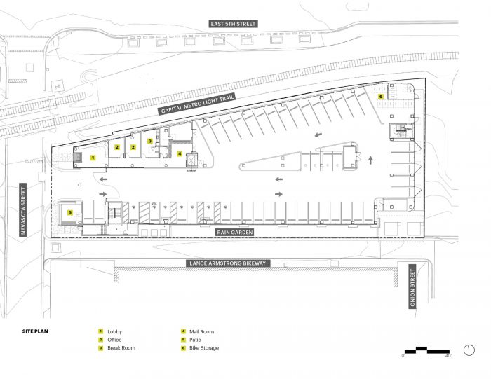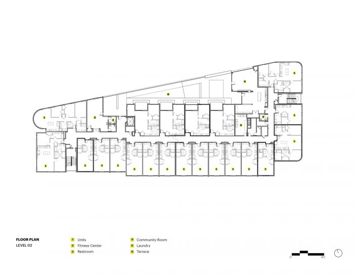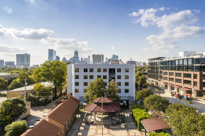 DMA Companies, a leader in affordable housing development in Central Texas, took on the task of developing the triangle-shaped site that was left over from the Plaza Saltillo development. The goal was to create state-of-the-art affordable housing that integrates seamlessly into the rapidly-changing neighborhood's scale and materiality. The project is a significant milestone in East Austin's desperate need for affordable housing with first-class access to multi-modal transit.