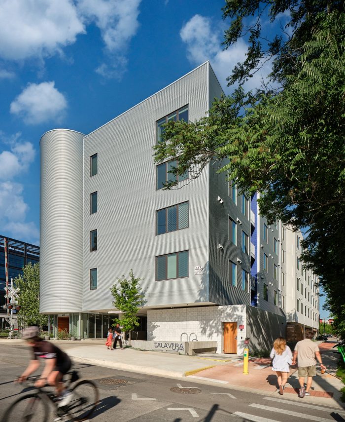 Talavera Lofts证明了奥斯汀对经济适用房和可持续城市化的承诺。该项目位于奥斯汀东部的中心地带,地理位置优越,可以满足社区的需求。这座拥有93个单元的建筑面向收入仅为地区中位数三分之一的申请人,确保所有奥斯汀人都能获得安全和舒适的住房。