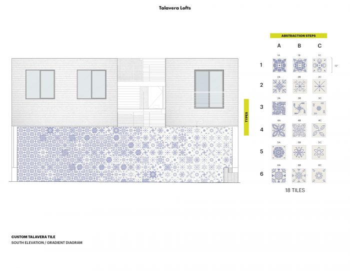 Sustainability is at the core of Talavera Lofts' design. The project makes use of a difficult urban slice of land that was originally deemed unsuitable for residential development. The location allows for a reduction in parking and vehicle usage, thanks to the many bus, rail, and bicycle lines adjacent to the site that connect to all points of the city. Stormwater is routed to rain gardens behind the building, which hold and filter the water before releasing it back into the ground at a controlled rate.