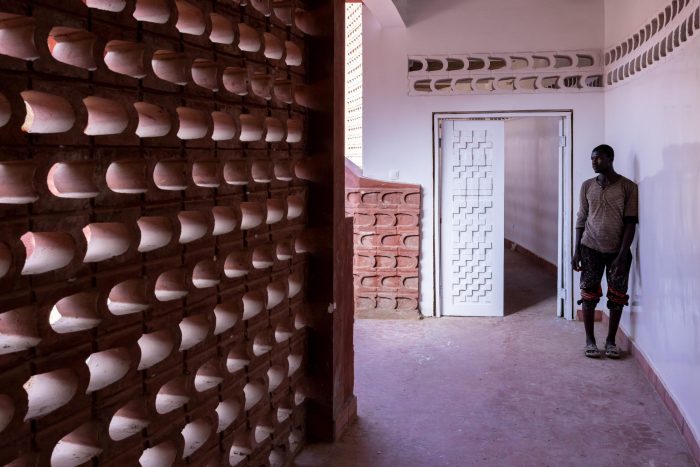 A Collaborative Project. Herz has collaborated at all stages with local leader Dr. Magueye Ba and depended upon the expertise of the community, working almost exclusively with craftsmen and engineers from Tambacounda and the surrounding villages, and thereby helping to provide employment and support for the rural economy. The holistic nature of the project has helped generate further infrastructure for the area beyond the hospital; a test façade created at an early stage by Herz and Ba to examine how the bricks functioned in the climate was subsequently expanded to build a small new school for the neighbouring children. In addition Herz and his wife have designed a playground, the first-ever built in the city of Tambacounda. A sensitivity to the local landscape has also been a key facet of this multi-dimensional project, with Herz’s design endeavouring to create as little disruption as possible to the local trees. Following the completion of the Maternity and Paediatric Hospital, Herz will build staff quarters to help attract more doctors from the city, in a design inspired by a print by Anni Albers.