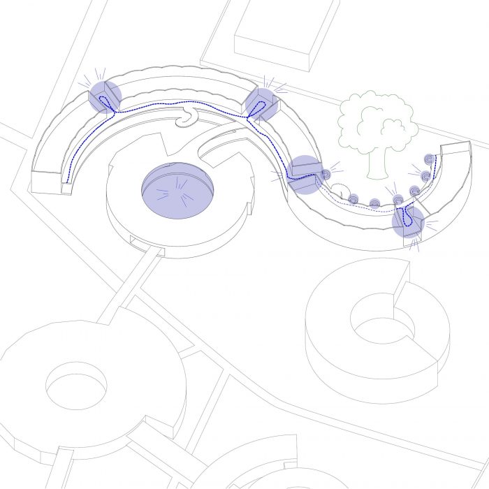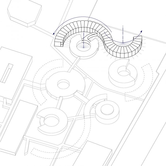 The Hospital. In the field of health, the Tambacounda Hospital - the only major hospital in the region - is a vital resource servicing around 20,000 patients per year from the surrounding area, stretching across the border into Mali. The doctors had previously been working under extremely difficult conditions; with the original design leaving the communal spaces severely overcrowded. The design of the new Maternity and Paediatric Hospital brings a sense of coherence and greatly improves the comfort of patients and their visiting families. Herz’s structure comprises a two-storey building in a curvilinear form which brings two clinics – paediatrics and maternity – together under the same roof and offers approximately 150 hospital beds. The extensive length of the building allows for the smooth circulation of staff and patients and accommodates multiple communal spaces both between the rooms and in the courtyards formed by the bends of the S-curve, turning it into the truly social spine of the hospital.