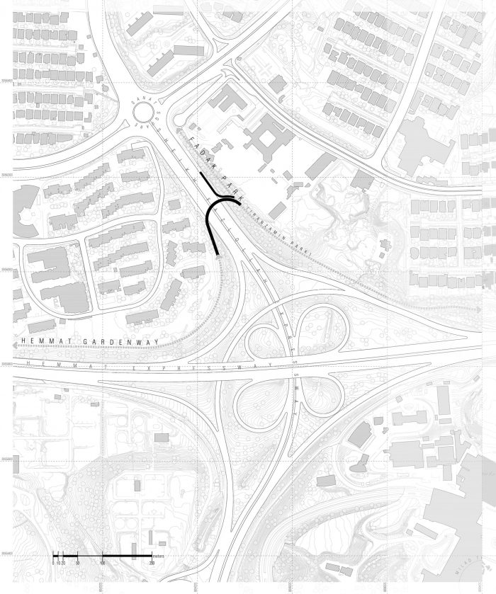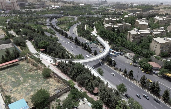 Tandorosti is a bridge for pedestrians and cyclists over one of the major motorways (Sheikh-Fazlollah-Nuri) in Tehran, Iran. Consisted of a 180-meter-long bridge and a 90-meter-long ramp, Tandorosti extends a linear park (Bagh-Rahe-e Hemmat) on one side of the motorway and connects it to a local park and a major roundabout on the other side (Fadak Park, sanat square) and creates a 4km walkway. The bridge characterizes a new approach in Tehran city planning: to reunite the neighborhood split apart by transport infrastructure. The approach aims to break through the vehicle infrastructure imprisoning isolated communities and promote green modes of transport in one of the most polluted metropolitan areas across the globe. So does the Tandorosti bridge.