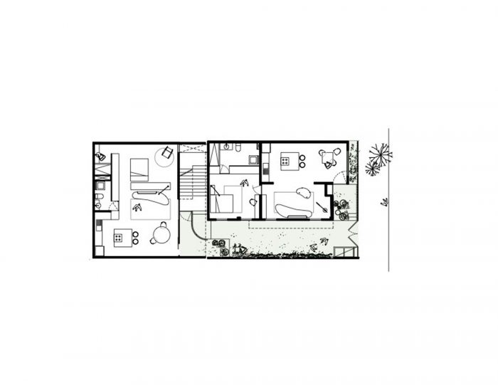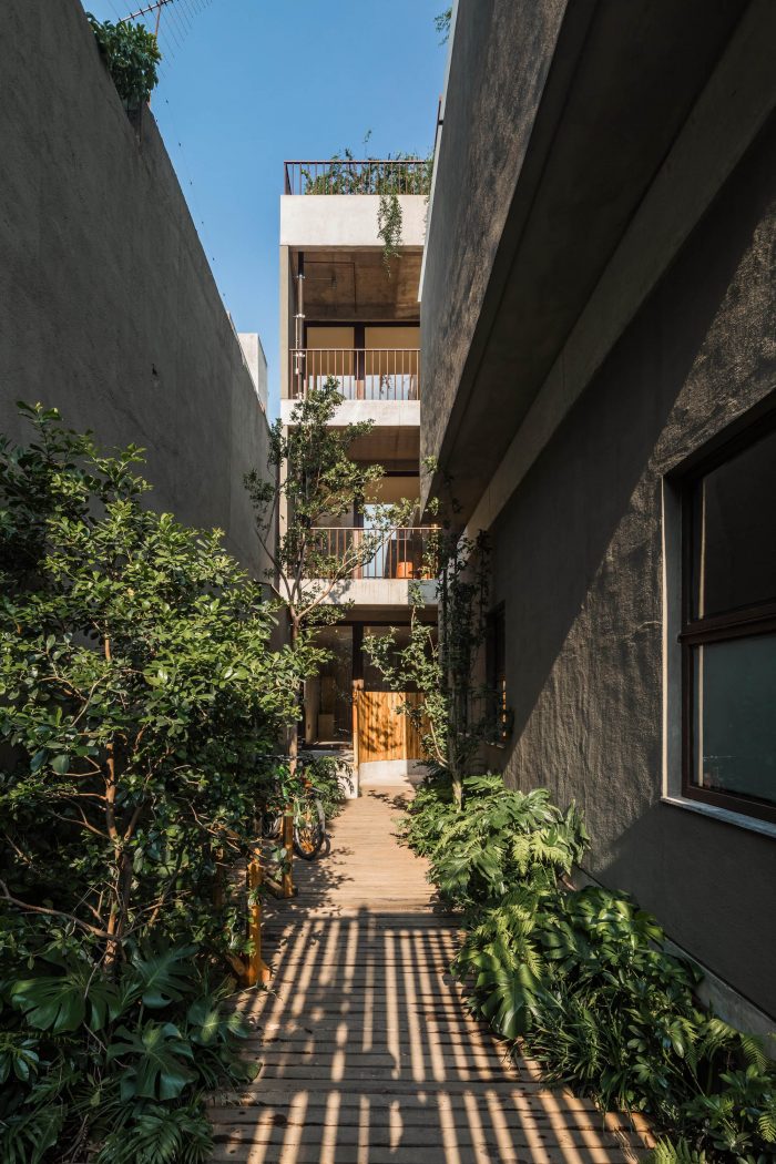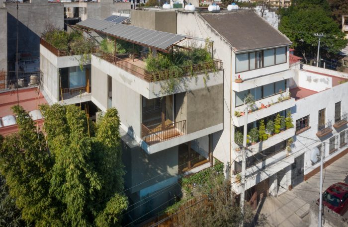 It is a contemporary housing proposal that dialogues with neighborhood life and its different expressions of traditional architecture. Its design refers to the clarity of lines and volumes that the functionalist style house from 1940 has on which the project rests, promoting its updating and redefinition. Located in the Roma Sur neighborhood of Mexico City, the intervention consisted of vegetating and pedestrianizing the corridor that connects the street with the interior of the property, as well as building five (5) new homes, terraces, and garden roofs that open the view of who visits them to live together and appreciate the urban landscape from an intimate space.
