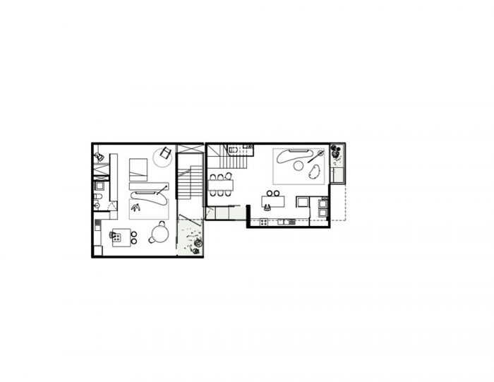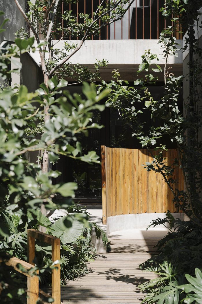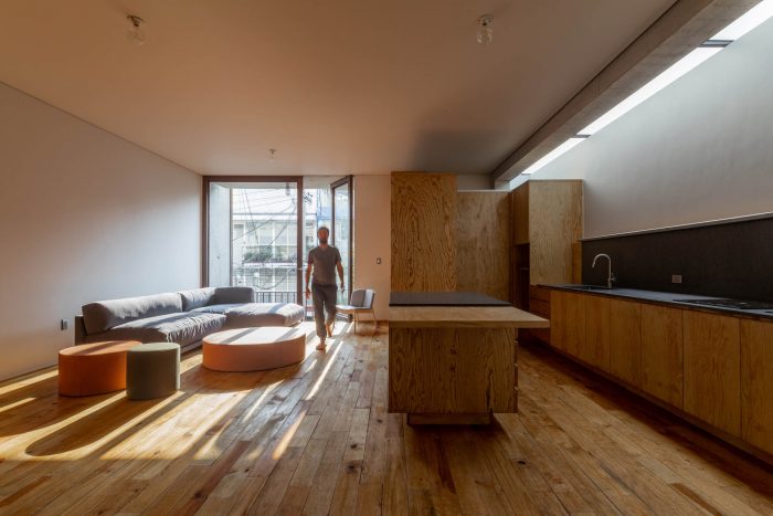 With a total of 500 m2 of constructed area, Taxco 25 houses three (3) types of housing, spacious, generous, and flexible spaces: the cataloged house (80 m2), three studios (80 m2), and an apartment of two levels. veles (160 m2). The materials selected for specific uses, the generous and naturally illuminated spaces, generate an experience where care for each of the details counts: from the furniture to the bicycle parking, the plant selection, the transition in the path from the metal railing, and the orderly arrangement of the exposed pipes, to the exhaustive design of the structural elements that make up the interior wooden staircase. Whether through the friendly relationship with the sidewalk, the extensive use of specific vegetation, the conviction to protect the historical architectural past of the area, or implementing energy efficiency and water use systems, the Taxco 25 project interacts with its surroundings and recognizes the urgency of developing proposals for urban regeneration in a conscious and critical way.