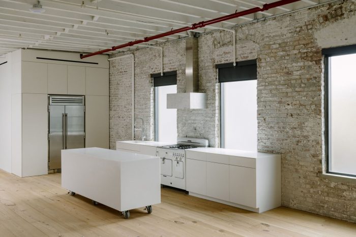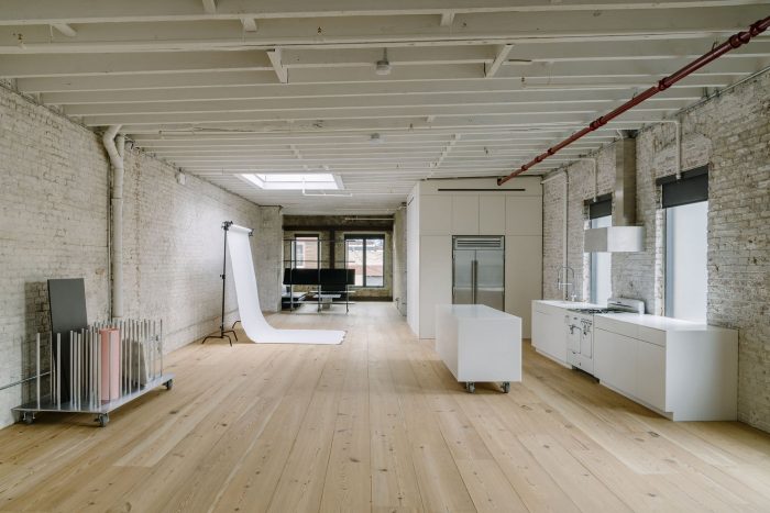 一位摄影师找到我们,要求我们在他们刚刚收购的布鲁克林阁楼中设计和建造他们的新工作室。该项目要求有一个灵活的空间,可以容纳各种不同的工作室设置。该空间以前是一个住宅,被细分为多个小房间。鉴于该房产三面都有窗户,而且有两个用木板盖住的天窗,自然光非常充足,我们能够看到这个空间的潜力,如果它被打开,尽可能少地进行永久性分割。