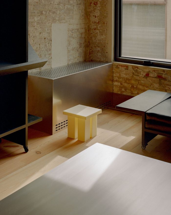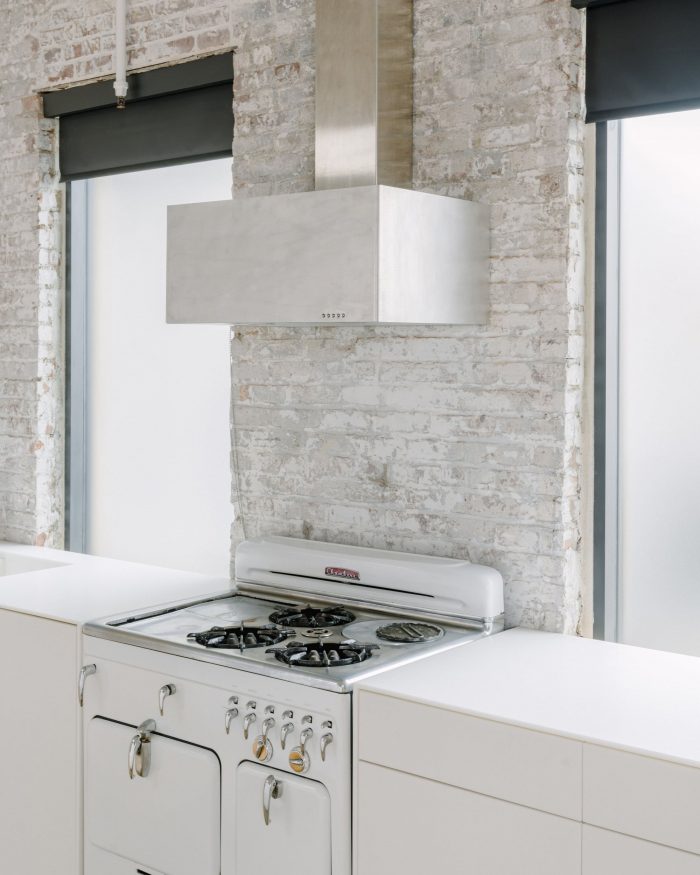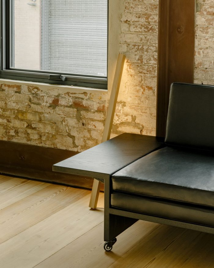 In homage to the Brooklyn loft, we sourced locally recycled wooden joists, abundant in the New York building stock, and fashioned them into wide-plank 12-foot-long floorboards, each 4-inch-thick beam was able to yield 3 individual floor boards, which were tongue-and-grooved onsite and installed by our local wood flooring specialists.