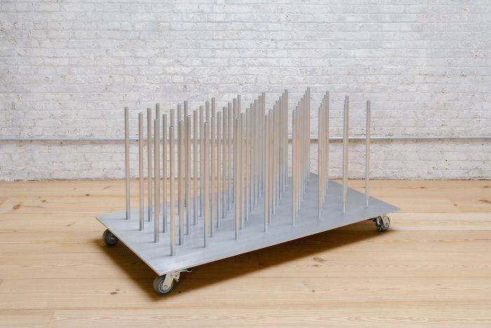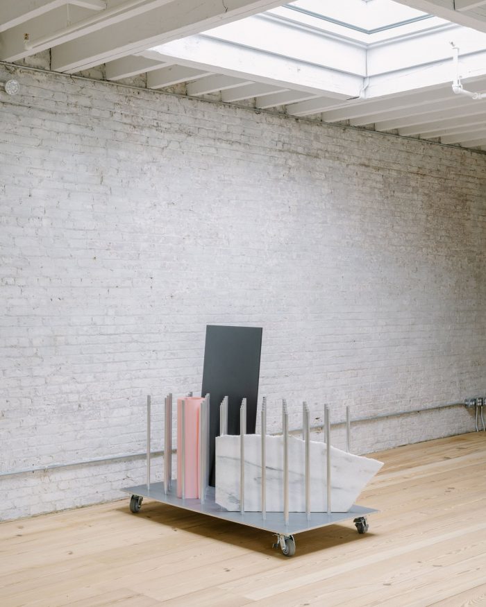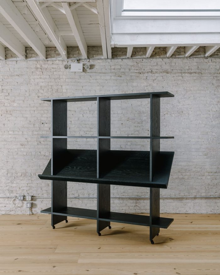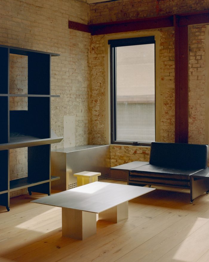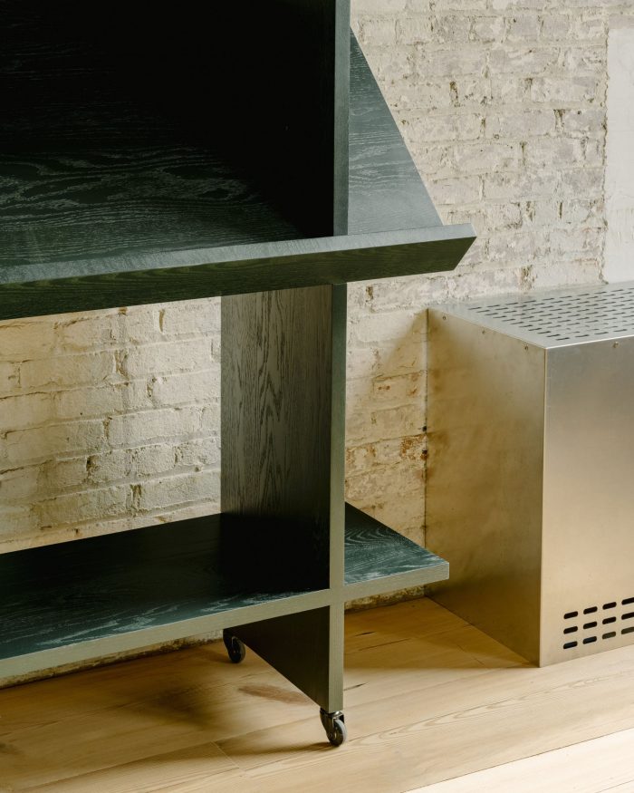 We distilled the smaller programmed rooms into two 10-foot cubes and placed them in opposing corners at either end of the space. To allow for maximum flexibility we designed a mobile living room, which could be reconfigured and moved into any part of the studio necessary to accommodate the various setups.