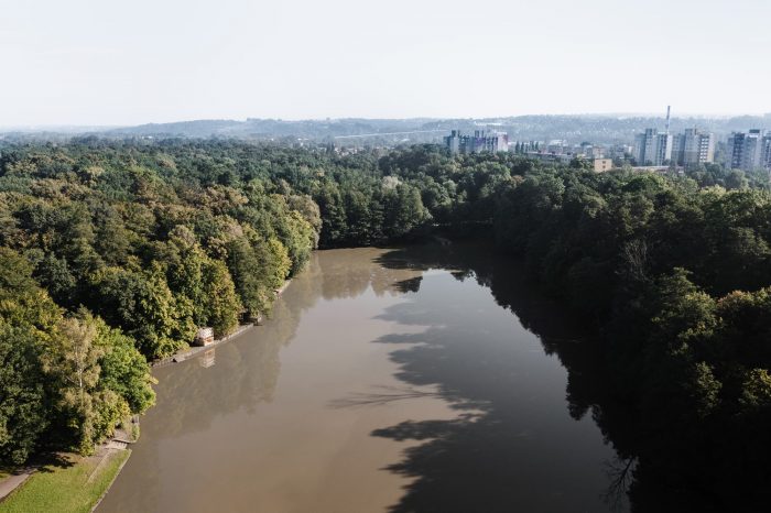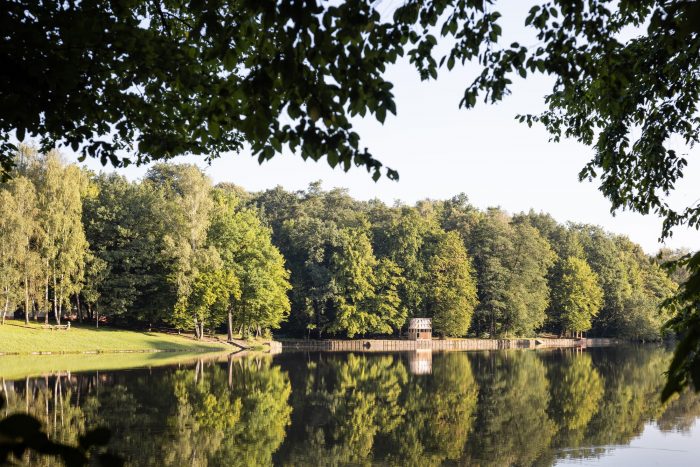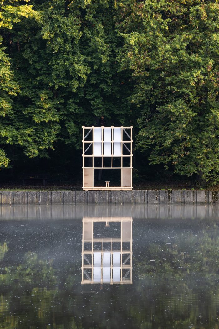 The pavilion invites people to a close experience with nature, focusing visitors' attention on the water reservoir - views, sounds, and movements. It forces a person to stop, to slow down thanks to the endless view into the treetops, the defined view of the boundless calm water surface, and the gentle closure from the surrounding bustle of everyday life.