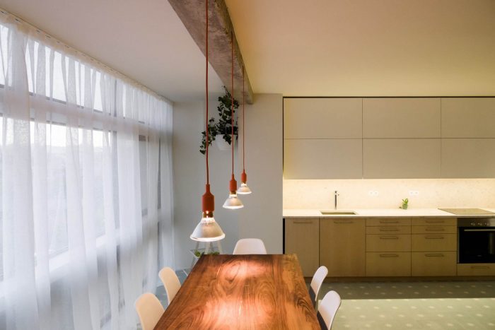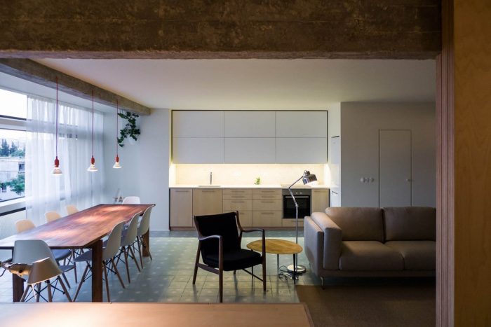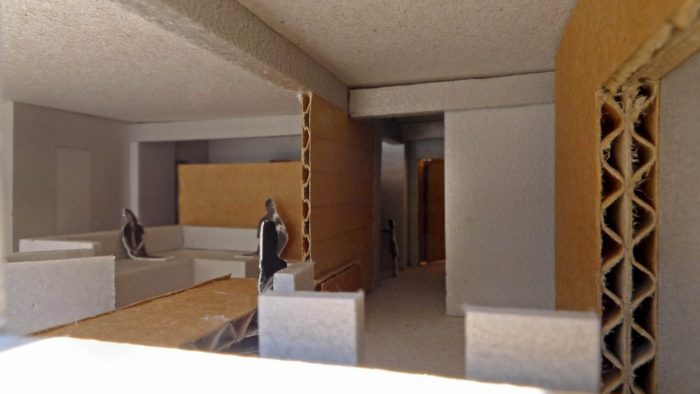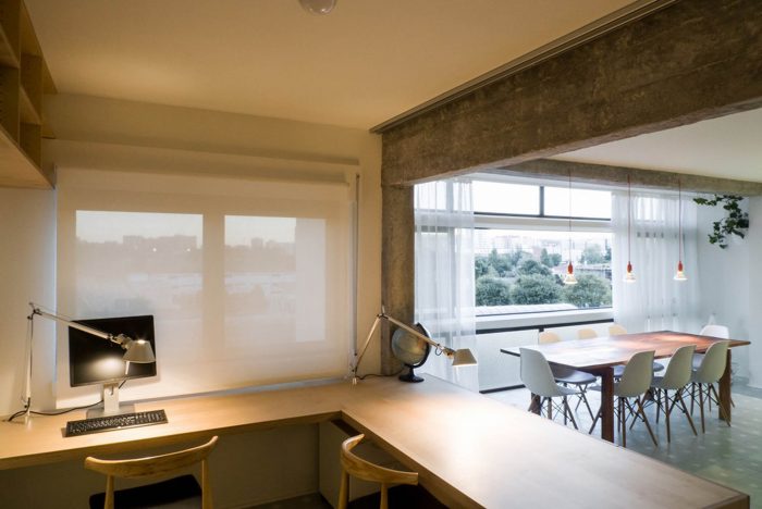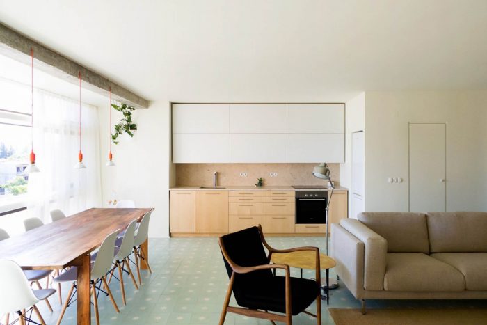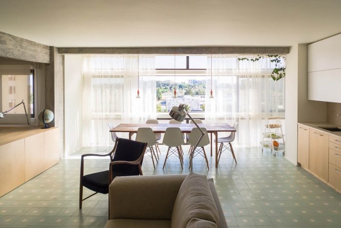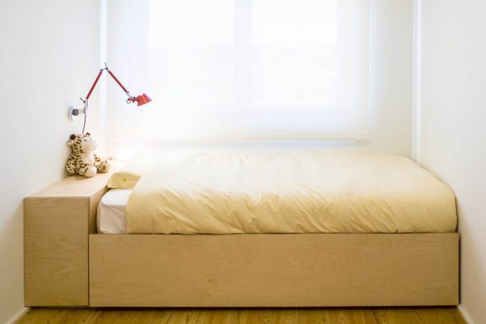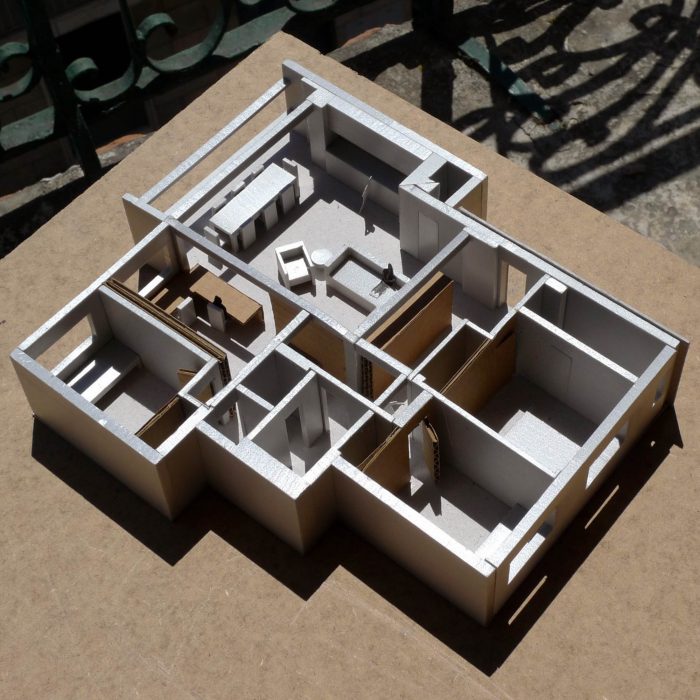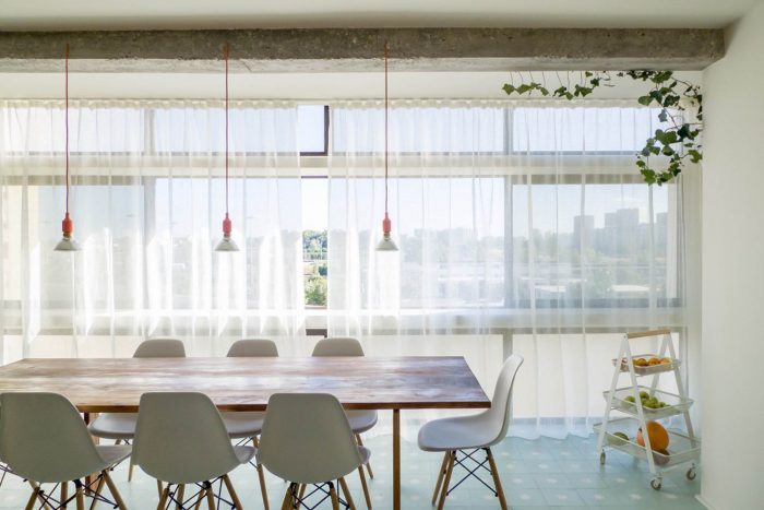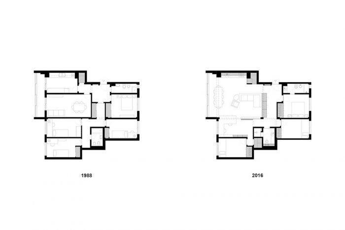 This apartment, built in the 80s, has problems that are typical of the architectural debilities of most of the portuguese housing buildings of the second half of the XX century: low ceilings throughout the house, subdivided spaces, long narrow kitchens, winding corridors and numerous protrusions of pillars and beams that reveal an unresolved conflict between structure and architecture.