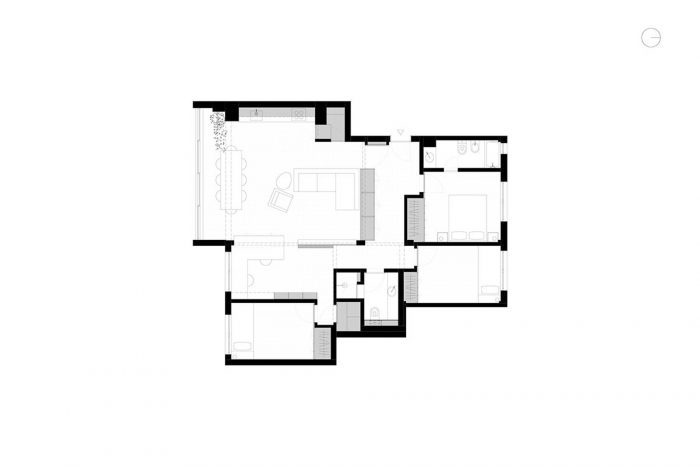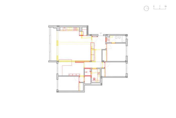这套公寓建于80年代,存在着20世纪下半叶大多数葡萄牙住房建筑的典型问题:整个房子的天花板很低,空间被分割,狭长的厨房,蜿蜒的走廊和许多突出的柱子和横梁,显示了结构和建筑之间未解决的冲突。
