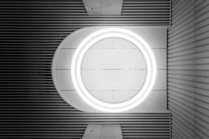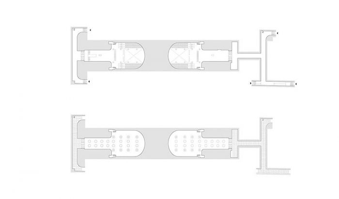It was important to create a space full of air and light. The use of fiberglass concrete offered a solution, giving a sense of integrity and plasticity to the interior. Its surface reflects and diffuses light, expanding the space visually. The elegant circular chandeliers have been specially designed for the station.