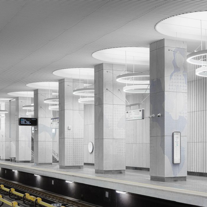 Buromoscow designed the new Terekhovo station of the Big Circle Line of the Moscow metro. Big circle line (BCL) is a core project for the metro network development of the Russian capital. With its 71 kilometers of length and 31 stations, it is the longest circle line in the world. It will unload radial metro lines, save passengers up to 30 minutes on each trip, and bring public transport to the remote areas of Moscow.