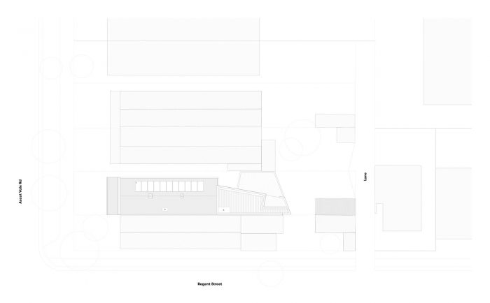 From the streets and lane, the project is a pared-back unobtrusive addition to the neighbourhood; a subtle object that aims to harmonise with existing local buildings. The form of the addition is driven by the compact site, planning regulations, and the desire for outlook from all rooms.