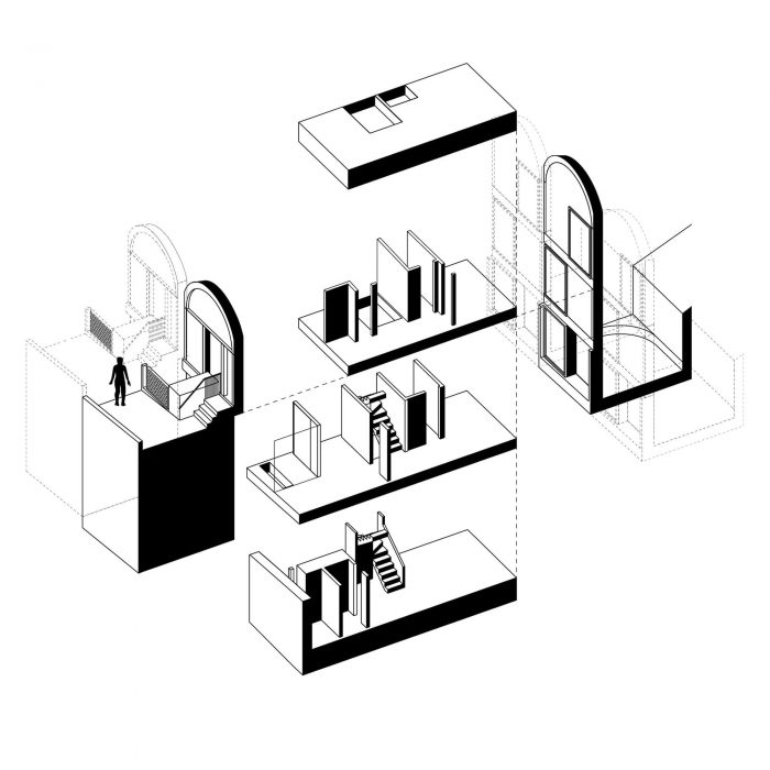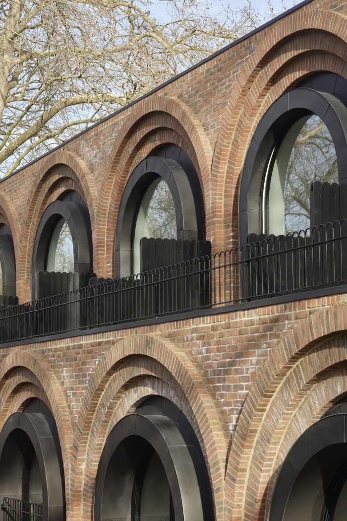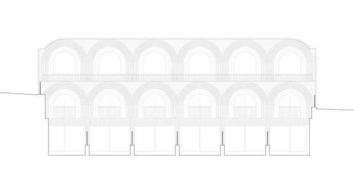 建筑。新建筑本身是对当地设计审查小组(由当地学者、规划师、建筑师和设计师组成的小组)意见的谨慎回应。由于大卫在该地区长大,丹尼尔在附近居住,设计首先是凭直觉进行的。我们认为在后部有一个小的体量是合适的,使用当地的伦敦砖形成的拱门,以参考当地的颜色和铁路拱门,直接坐到了这个地方。许多铁路拱门/隧道/桥梁纵横交错,参考这一重要的基础设施,感觉是正确的。在大学里,我们探讨了完全摒弃背景,只专注于探索性建筑的概念,但在这个项目中,我们觉得我们做到了这两点--背景使我们对建筑进行了彻底的探索。我们对当地及周边地区的建筑进行了研究。所有这些建筑都以不同的形式展示了英国新古典主义建筑的演变,模仿了古典的威尼斯宫殿、帕拉迪奥和伊尼戈-琼斯的建筑语言。这些建筑强调了在达特茅斯公园保护区内常见的砖砌画布上的矩形和拱门的强烈混合。特别值得注意的是罗马拱门和底层使用的渲染锈迹斑斑的底座。这种历史纹理的关键原则导致我们将该地区现有的设计属性提炼为最纯粹的形式,即矩形和拱门--设计过程中的关键成分。新房子的位置只比原来的加油站略高,这使得光线可以照射到后面相邻的Denyer房子的底层窗户。一个绿色的屋顶覆盖了所有的房子,这样后面高处的居民就可以看到野花和绿色植物,为各种鸟类和昆虫/野生动物创造一个栖息地。在项目规划阶段的公众咨询中,有趣的是,咨询回来的主要意见之一是,目前场地上的废弃涂鸦加油站吸引了反社会行为,居民们会欢迎生活在学院路这个空旷而有时又危险的地方,现在完工了,我们希望新的住宅会给学院路的这一部分带来活力。