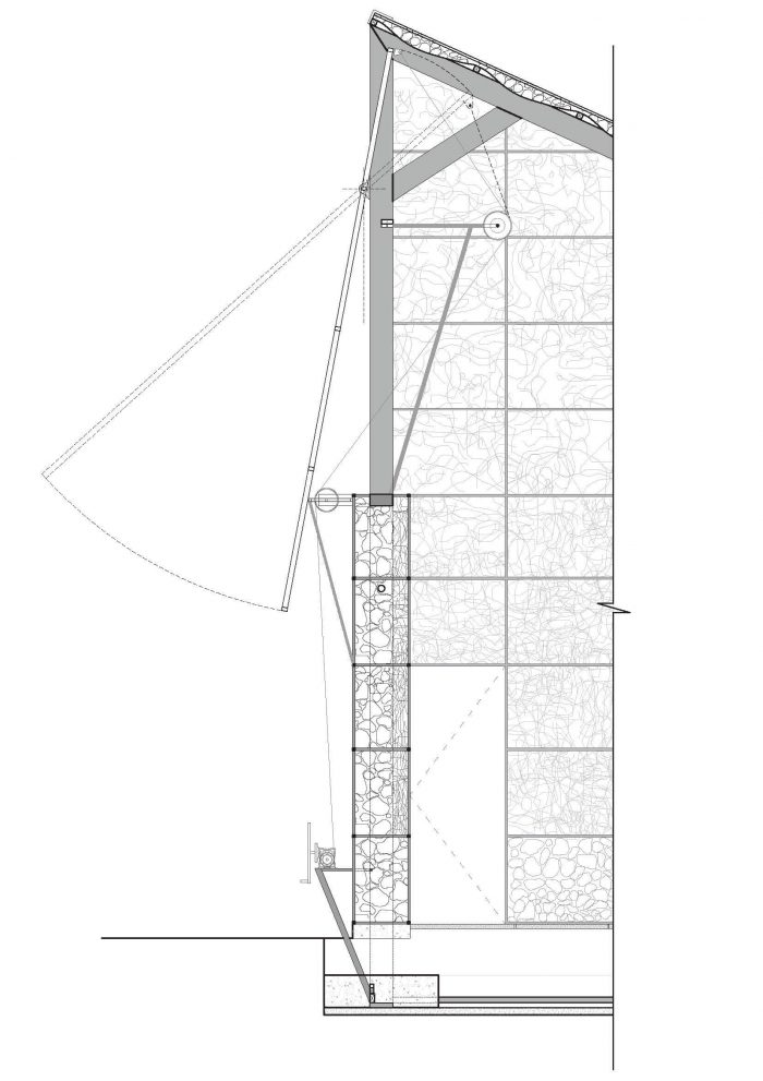 这个临时性的结构是轻盈的,因为它没有任何混凝土基座,而且可以被拆除,以取回其所有的材料,这些材料可以被重新使用或在其他地方重新组装起来。