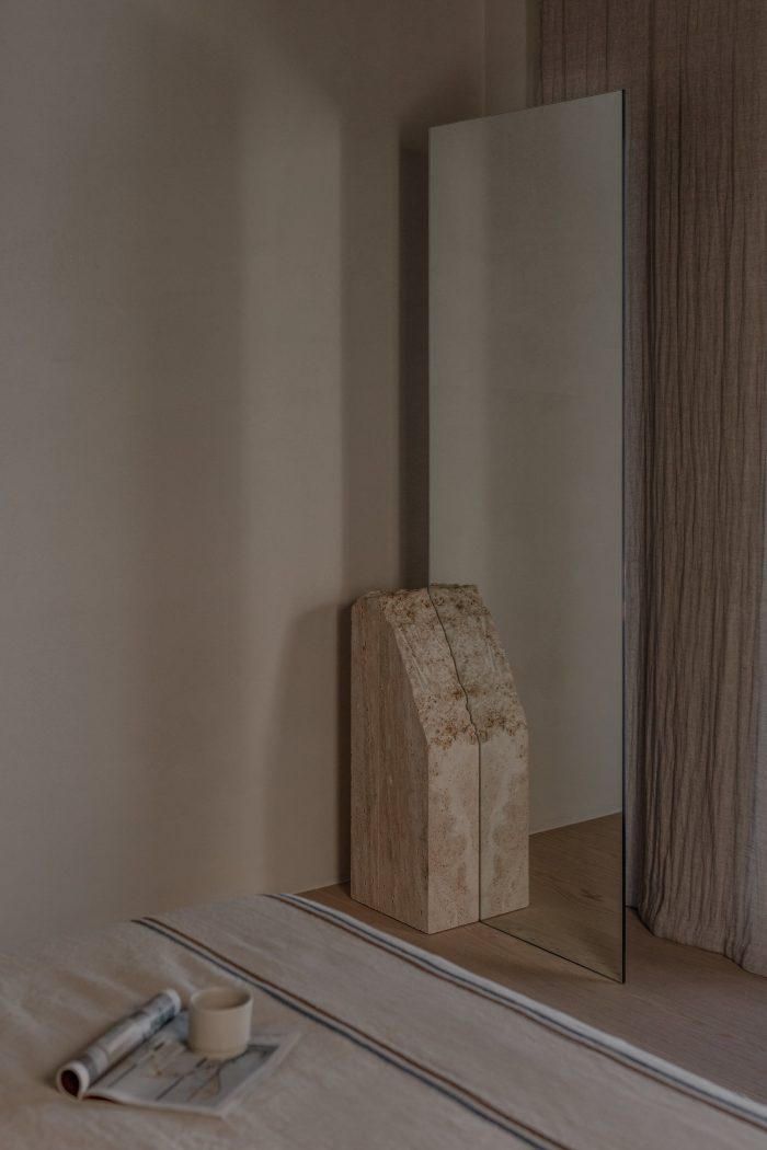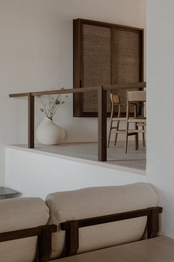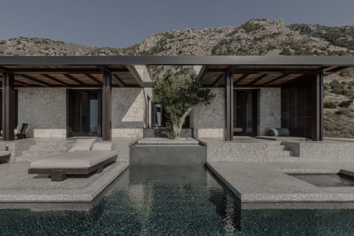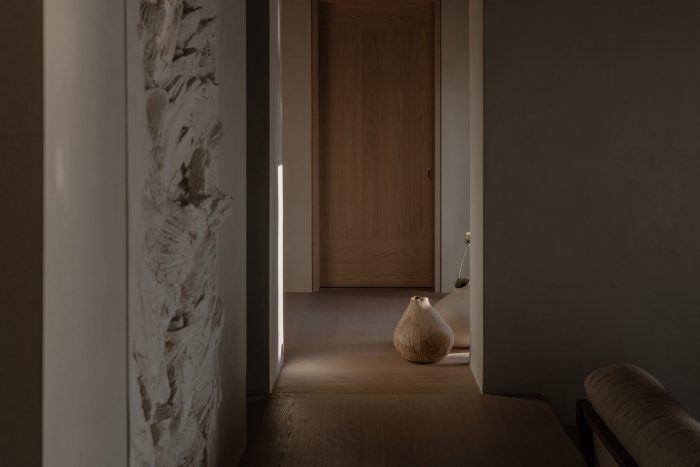 Block722 collaborated with local artisans throughout the construction, applying expert manufacturing skills to a large array of elements in the house. This applies to both high-end architectural details and furniture pieces, the majority of which are bespoke and created specifically with this project in mind, using marble, wood, stone, and terrazzo. All the pieces together form Block722’s ANATA furniture collection. This approach, rich in artistry and locally sourced, natural materials, elevates the design into a truly custom-made residential gem. Neutral, earthy colors dominate, and quality is prioritized over quantity.