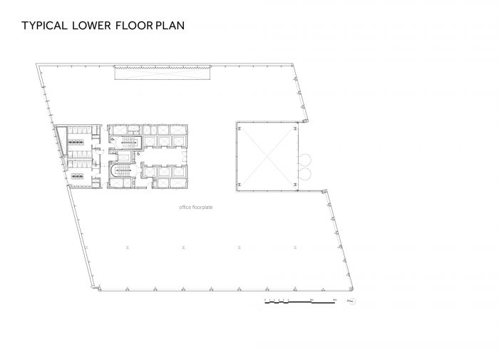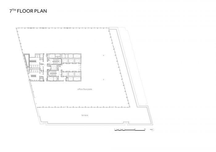 在5、7、9层(共9127平方米),采用了强化的新风系统、低/无VOC涂料,并通过广阔的屋顶露台接触大自然。屋顶上住着两个蜜蜂群。这座建筑的建造以及操作它的先进技术都是面向未来的。九层楼中的每一层都有灵活的楼板和极少的柱子,允许新租户创造适合他们业务的布局。作为一个 "智能建筑",它拥有先进的尖端技术,通过数字连接实现协作。