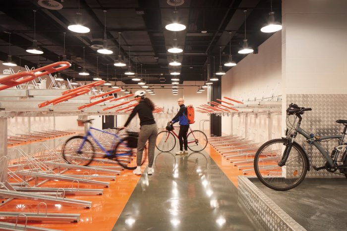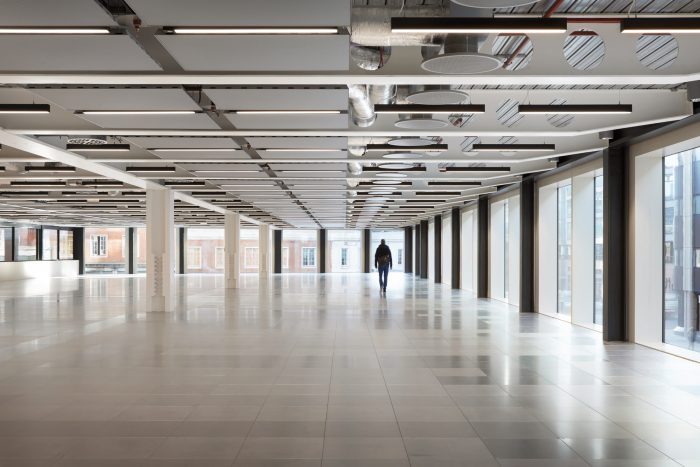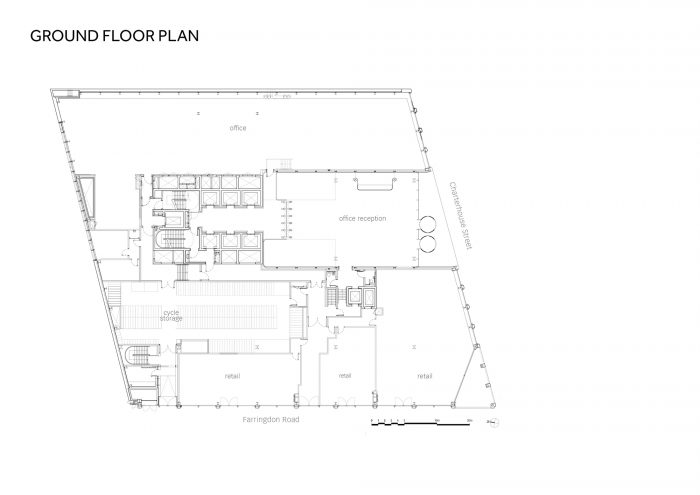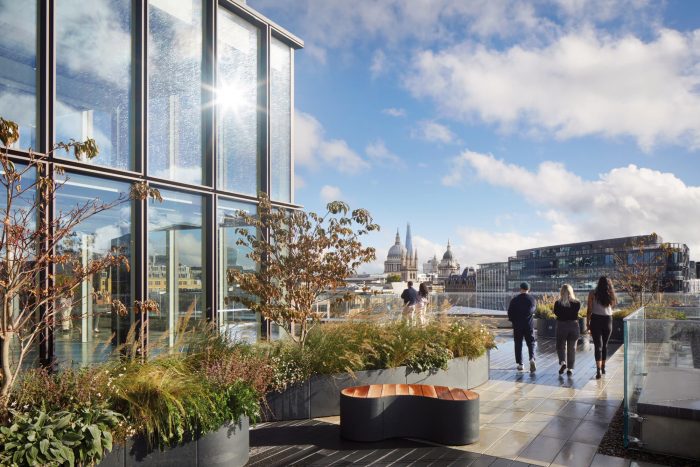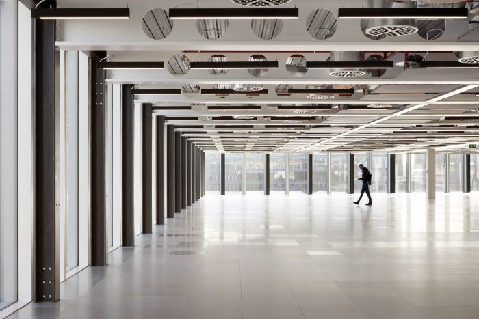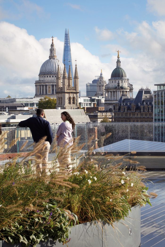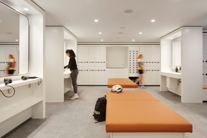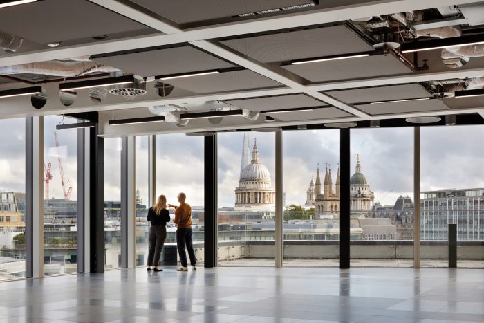 A space-age bike park, accessed directly off Farringdon Road cycle super highway has 426 spaces (1 for every 5 occupants), and two repair stations. Cyclists descend into a suite of spa-quality changing areas (672 lockers, 30 showers), fully kitted with hairdryers, hair straighteners, and complementary towels. The building is designed to allow tenants to achieve Platinum WELL rating in their fit-out. Floors are flooded with light and many workstations have views of St Paul’s Cathedral, The Shard, and Smithfield Market.