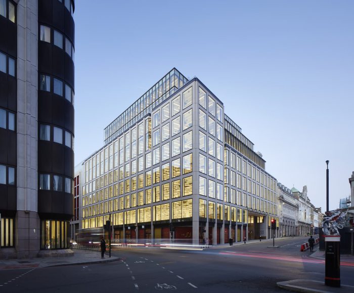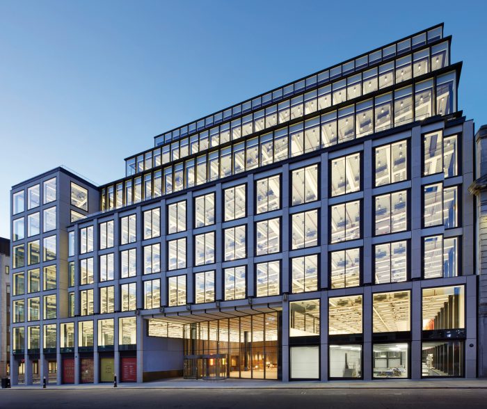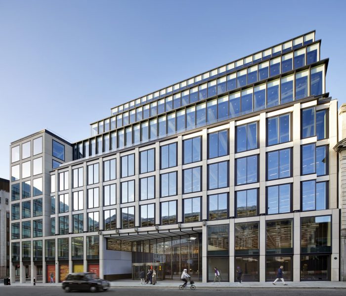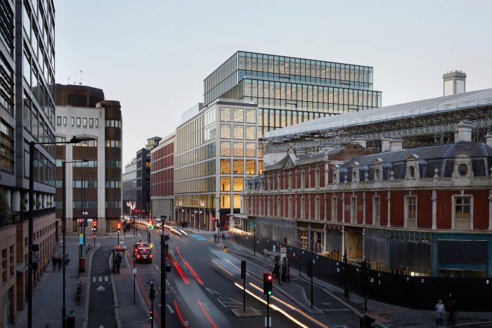 An office for the future. The JJ Mack Building (33 Charterhouse Street, Smithfield Market, London), designed by Lifschutz Davidson Sandilands for Helical plc and Ashby Capital, is a handsome stone-clad building that will facilitate new hybrid ways of working and help lure and retain top talent. Located within a three-minute walk of Farringdon Station (Elizabeth Line, Thames Link, and London Underground), it offers an easy journey to a quintessential London neighborhood with cultural locations on its doorstep and great restaurants and cafés for lunch or drinks after work in a lively scene.