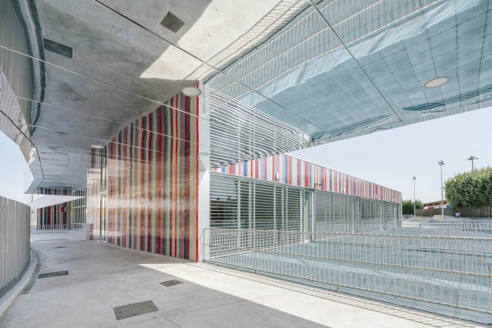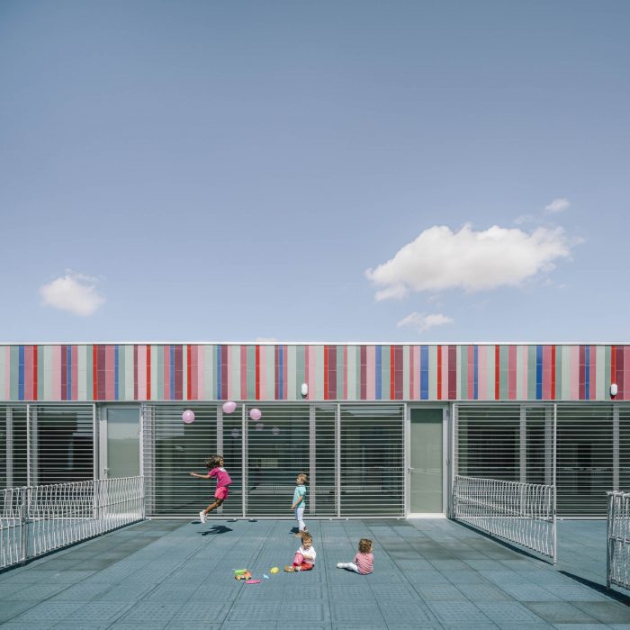 The accessible plan from the outside, is a large ceramic plinth made up of vertical pieces with seven colors made by Toni Cumella, which symbolize, at the same time, the singularity and the equality of each boy and each girl, collecting and enclosing the scale of the courtyards and play areas.