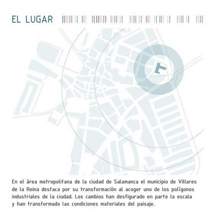 In the metropolitan area of the city of Salamanca, the municipality of Villares de la Reina stands out for its transformation during the last decades as it has one of the industrial estates of the city. The changes have partly disfigured the scale and transformed the material landscape conditions.