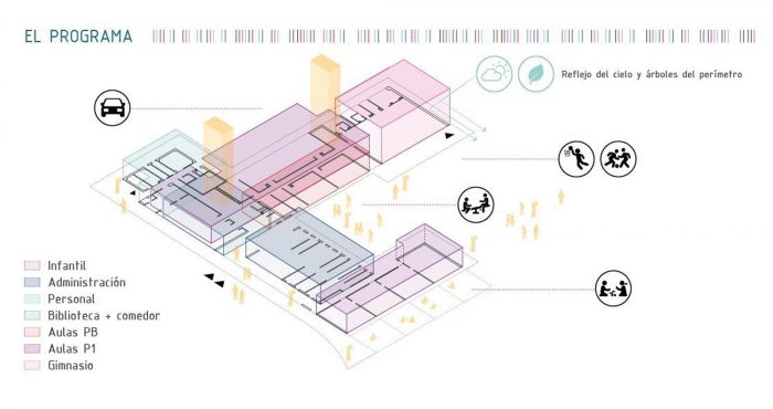 The almost invisible school proposes a reflection on the domestic scale of this kind of infrastructures, where the little ones must find spaces that they can catch, and places with which they can dream.