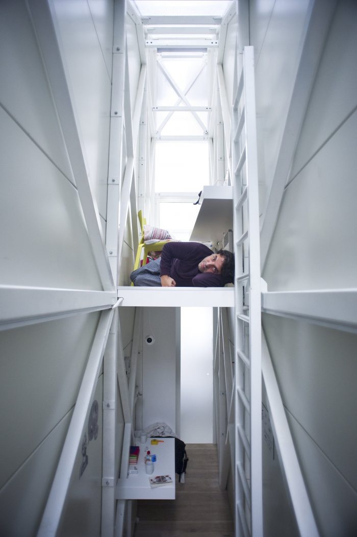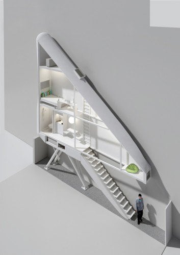 The House is located on the plot measuring 92 centimeters in its narrowest point and 152 centimeters in its widest point. “That is why at first it seems that the construction of living space within such premise is impossible. Keret House is to contradict that false image, simultaneously broadening the concept of impossible architecture”, says the architect Jakub Szczesny. The house itself is 72 centimeters in the narrowest and 122 centimeters in the widest point.